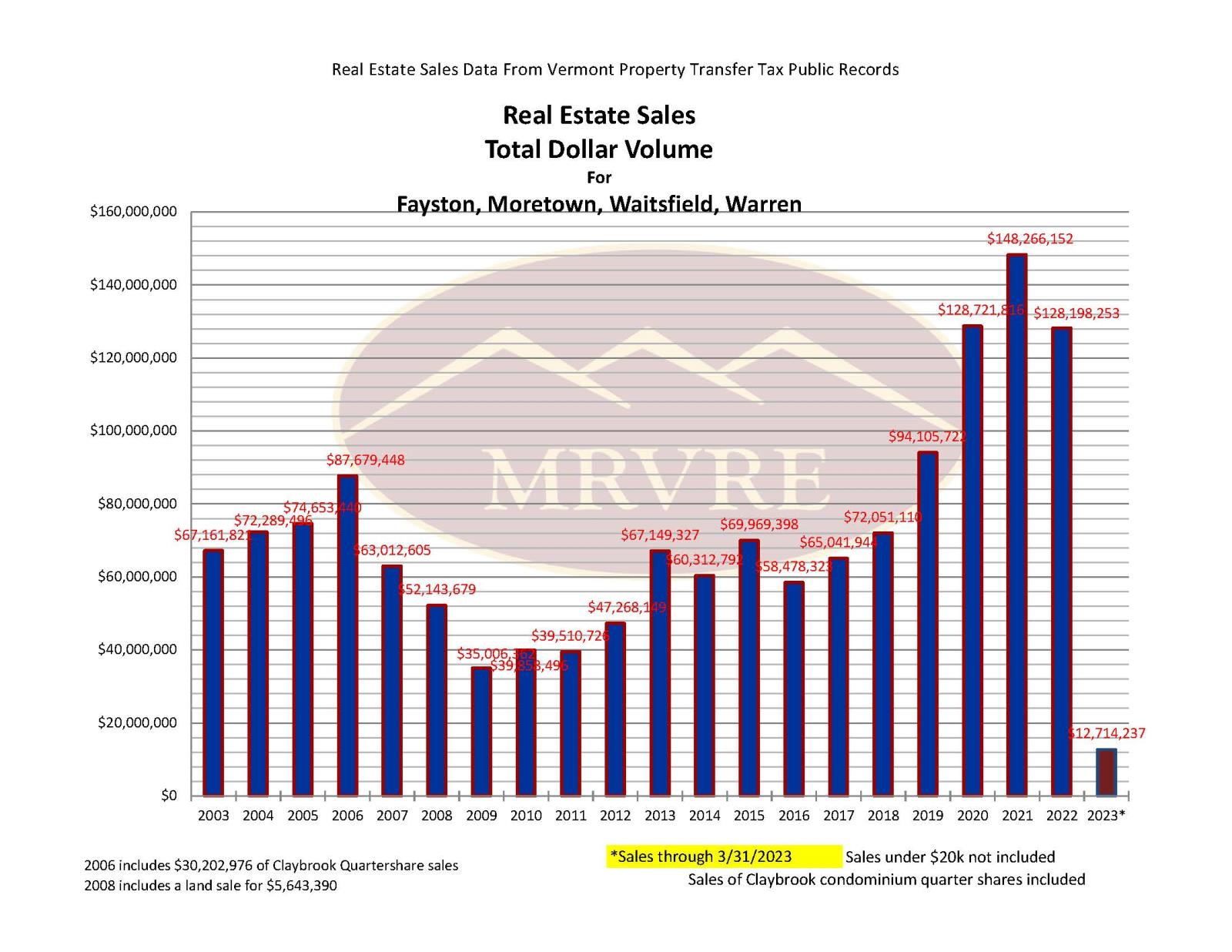 Historical Mad River Valley Real Estate to March 31 2023: