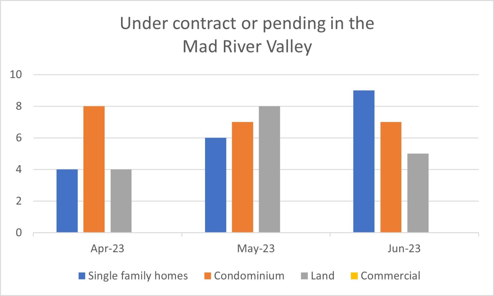 There were 4 single family home sales in March 2023 from $325,000 - $875,000 (zero sales in February). There were 2 condominium sales from $350,000 - $570,000 (down from 5 sales in February). There were 5 undeveloped land sales in March of 2023 from $81,550 - $355,000 (zero sales in February). There were zero commercial sales in March 2022 for $650,000 (zero sales in February).