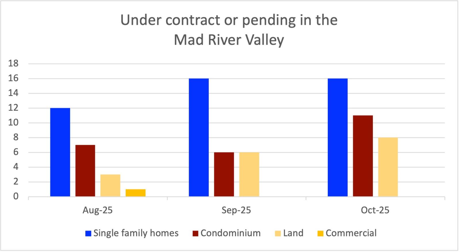 Regarding the properties that are currently under contract, 4 of the 11 condos, 5 of the 18 single family homes, and 2 of the 8 land parcels were listed after September 1, 2025. Clearly some buyers are still very active and not waiting long if they like what they see!