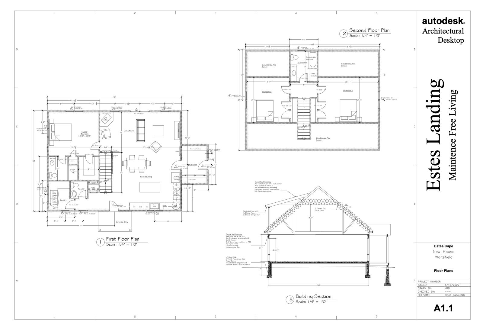 With the housing inventory near historic lows in the Mad River Valley, Central Vermont, and beyond, we are very excited about the new development at Estes Landing in Waitsfield. There will be a total of 20 homes consisting of two floor plans, a 2,040 square foot Cape, and a 1,900 square foot 1-story Flat. Both will have three bedrooms and an attached garage.