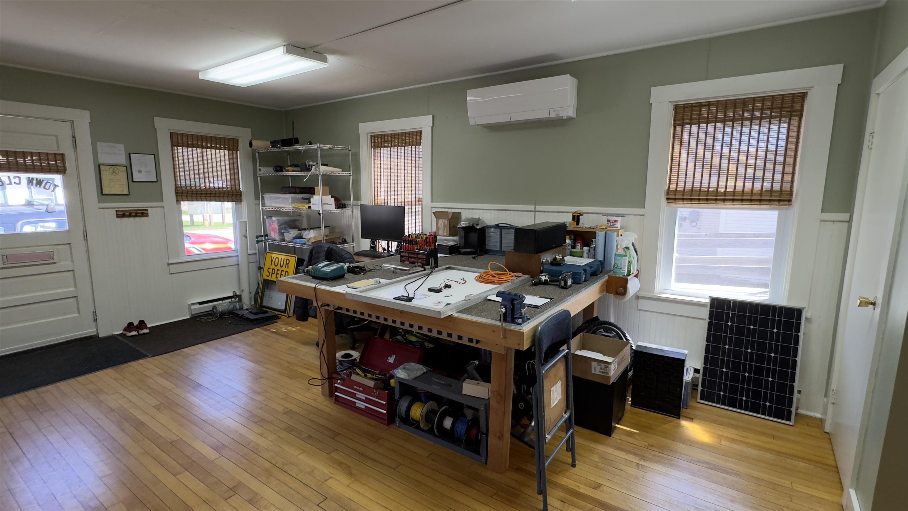 Charming Former Town Office with Endless Possibilities This well-maintained, character-filled building once served as the town clerk's office and now functions as a private office space. Though modest in size, it includes a full basement for storage, a drilled well, and a septic system supporting one bathroom. Ideally located at the high-visibility intersection of Route 100 and Route 125, the property offers excellent potential for a variety of uses. With a bit of imagination, it could be transformed into a commercial space, boutique shop, cozy art studio, or even a unique residential dwelling--such as a one-bedroom or studio apartment (buyer to verify feasibility). The building features three heat sources: electric heat (currently not in use), a space heater, and a brand-new heat pump that efficiently provides both heating in winter and air conditioning in summer. Whether you're looking for a compact business location or a creative retreat, this flexible space presents a rare opportunity in a prime location.