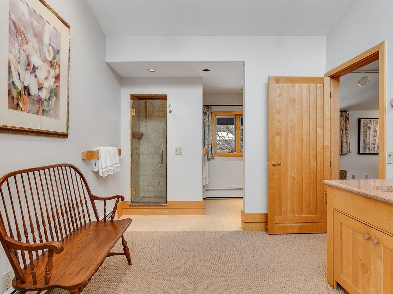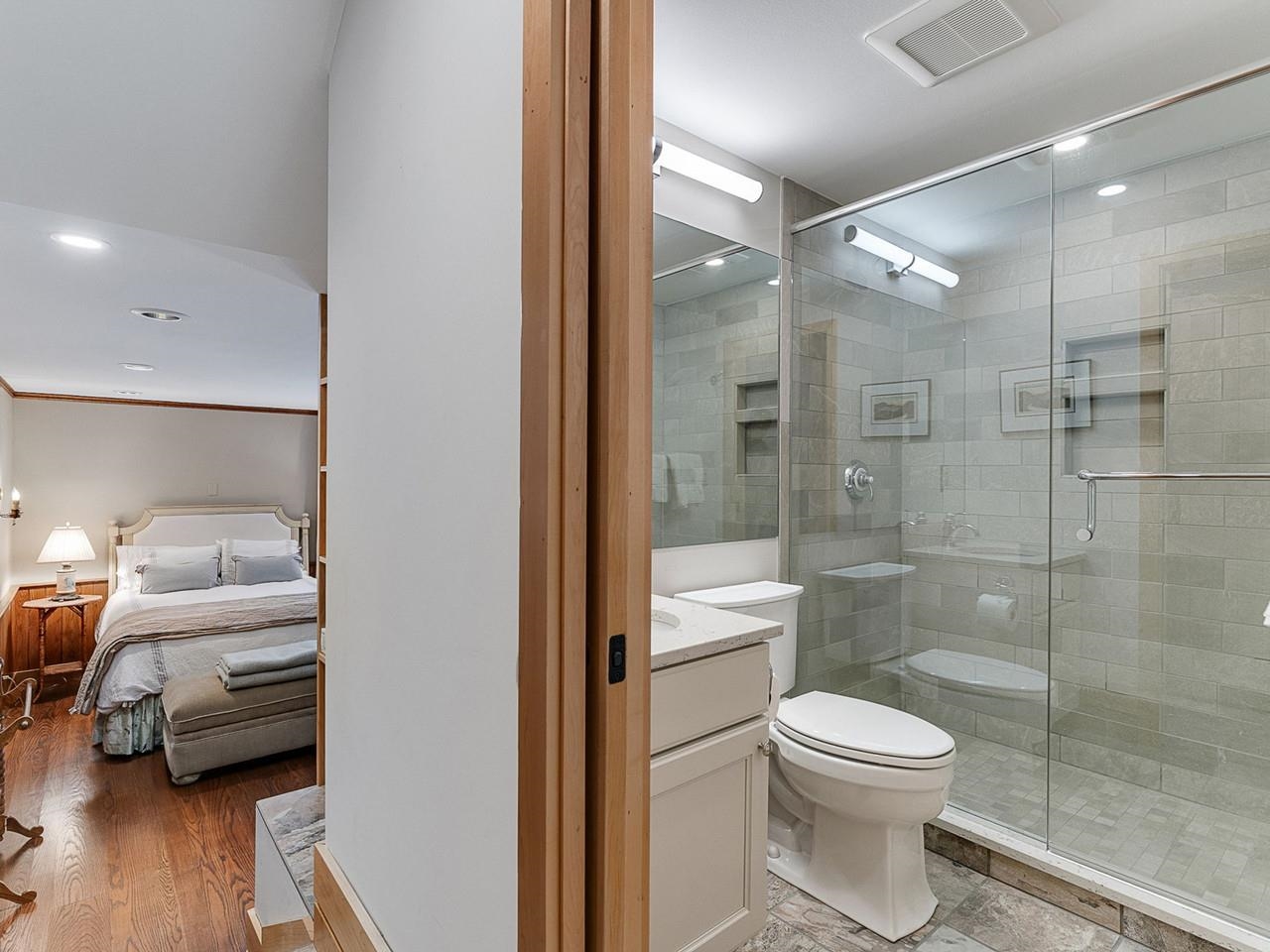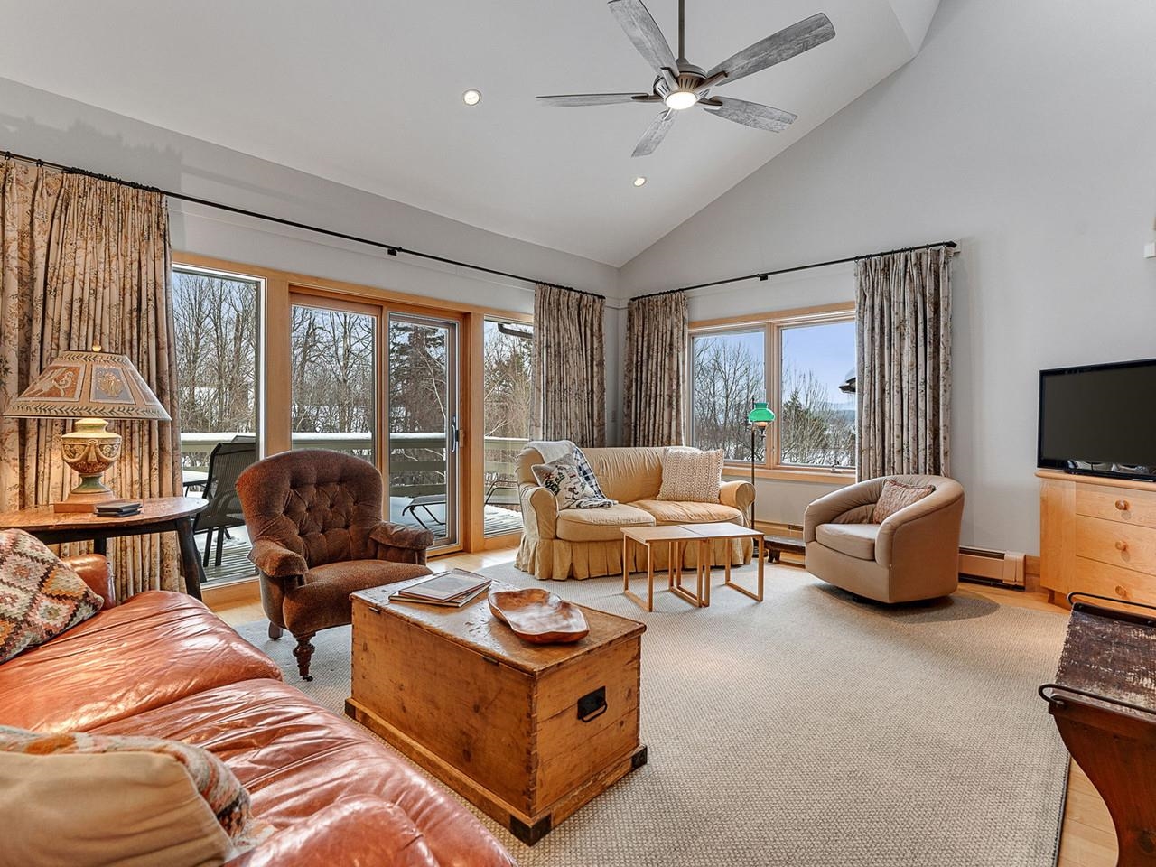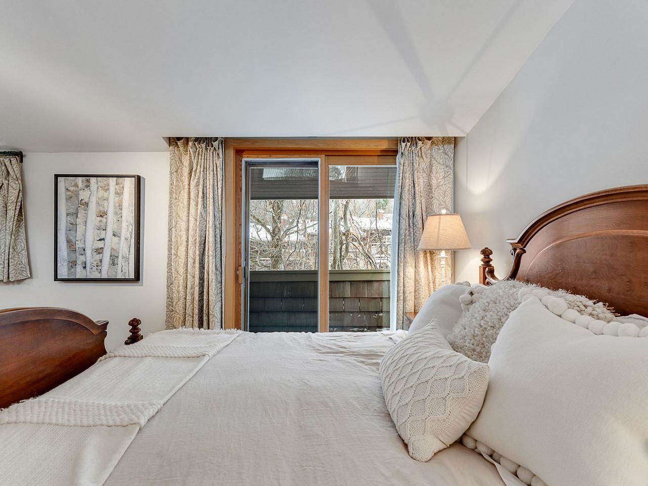 Situated just off the Out-to-Lunch ski trail, this residence offers convenient ski-on/off access. The kitchen is equipped with Italian Bertazzoni stainless-steel appliances, a farmhouse sink, and quartz countertops. The living area includes a wood-burning fireplace. The upper-level primary suite boasts a spacious closet with custom built-ins, and an en suite bathroom featuring a jacuzzi tub, tiled shower, and bidet. The lower level contains a bedroom with a gas fireplace and mini refrigerator, a substantial mudroom for equipment, and a heated garage. Additional highlights include central gas heating, superior insulation, solid core doors, and detailed oak and maple woodwork. Forum units of this quality are seldom available.