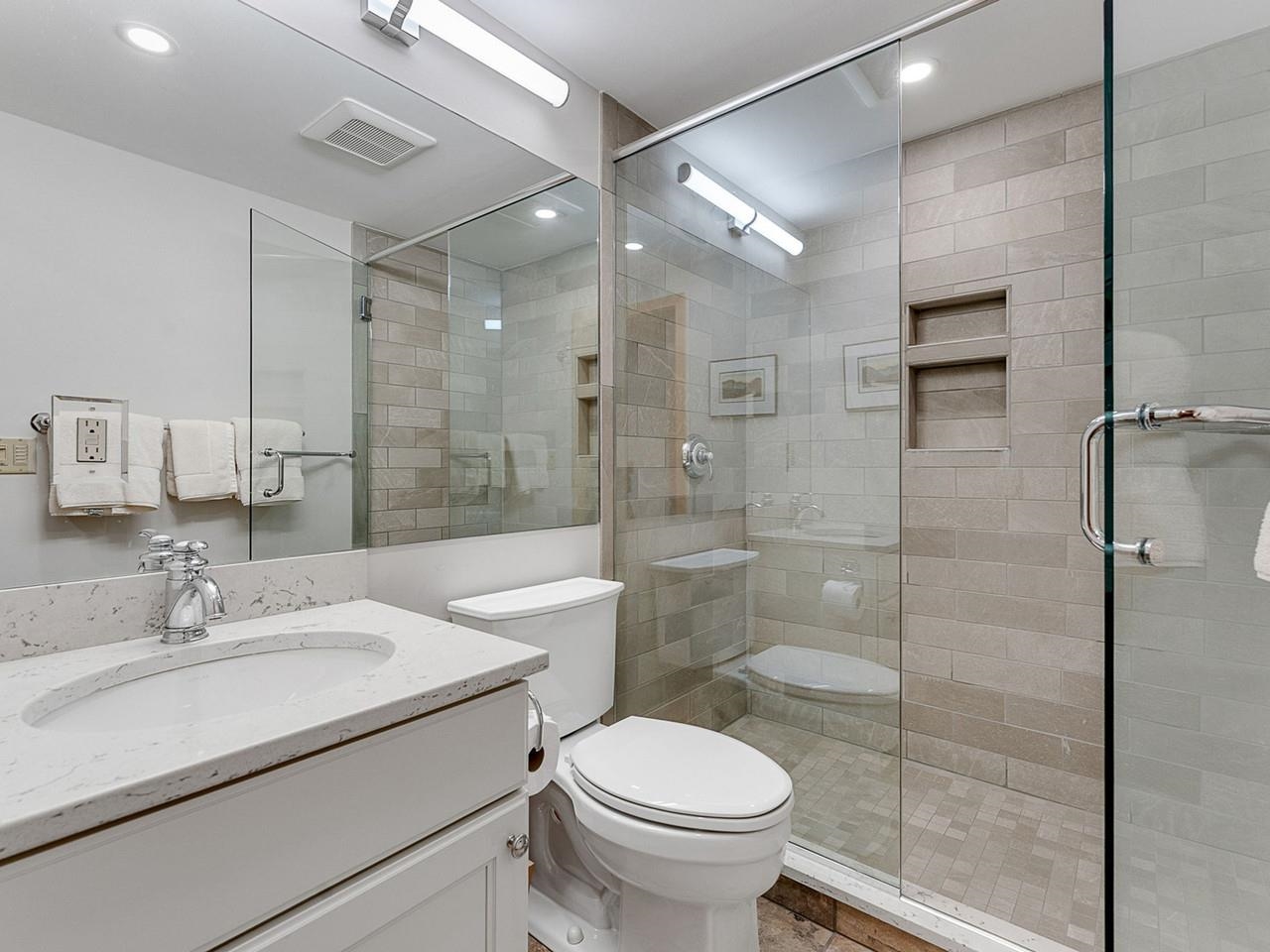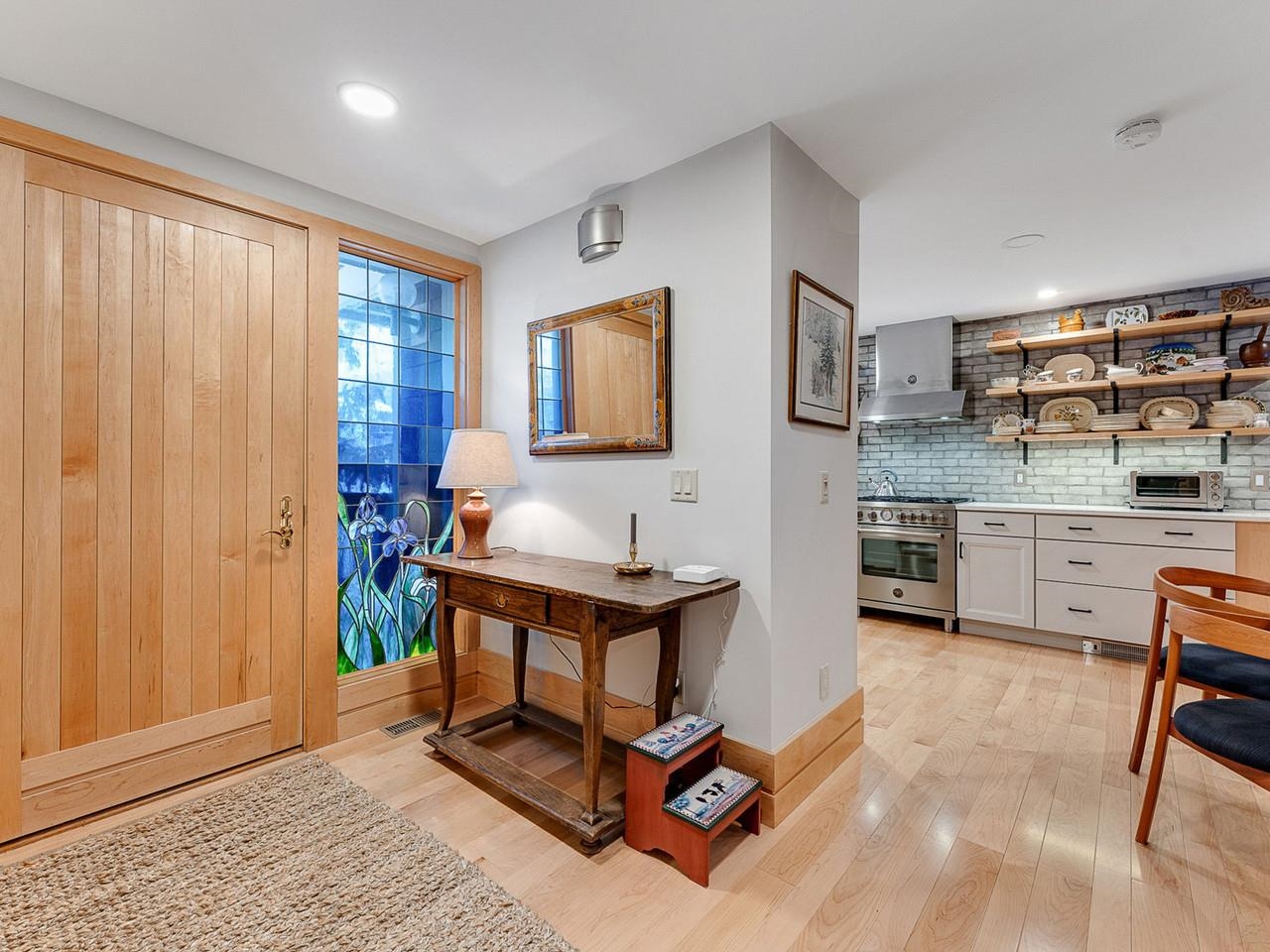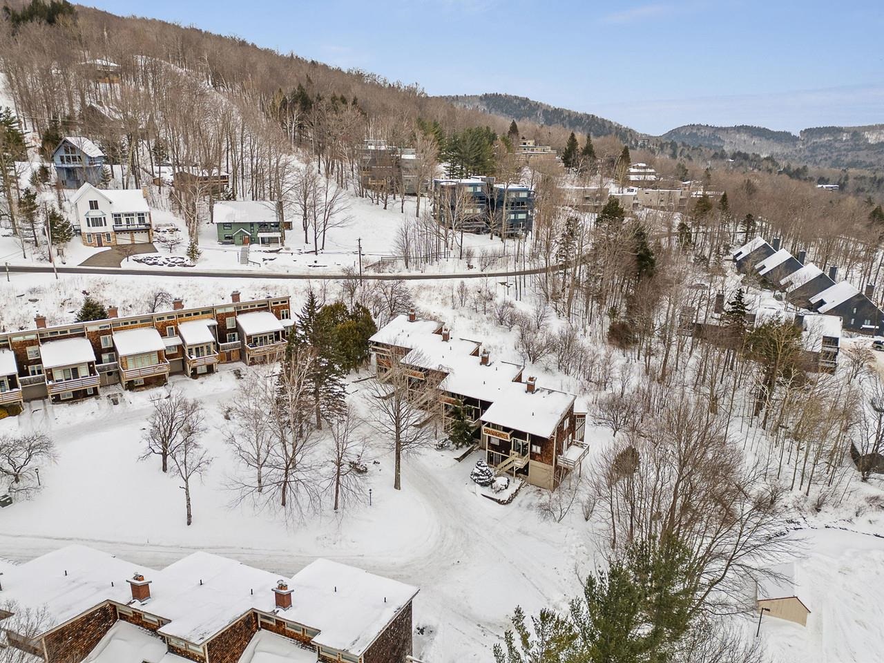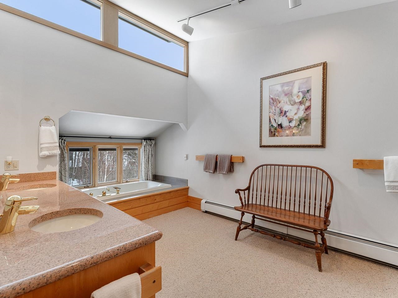 Situated just off the Out-to-Lunch ski trail, this residence offers convenient ski-on/off access. The kitchen is equipped with Italian Bertazzoni stainless-steel appliances, a farmhouse sink, and quartz countertops. The living area includes a wood-burning fireplace. The upper-level primary suite boasts a spacious closet with custom built-ins, and an en suite bathroom featuring a jacuzzi tub, tiled shower, and bidet. The lower level contains a bedroom with a gas fireplace and mini refrigerator, a substantial mudroom for equipment, and a heated garage. Additional highlights include central gas heating, superior insulation, solid core doors, and detailed oak and maple woodwork. Forum units of this quality are seldom available.