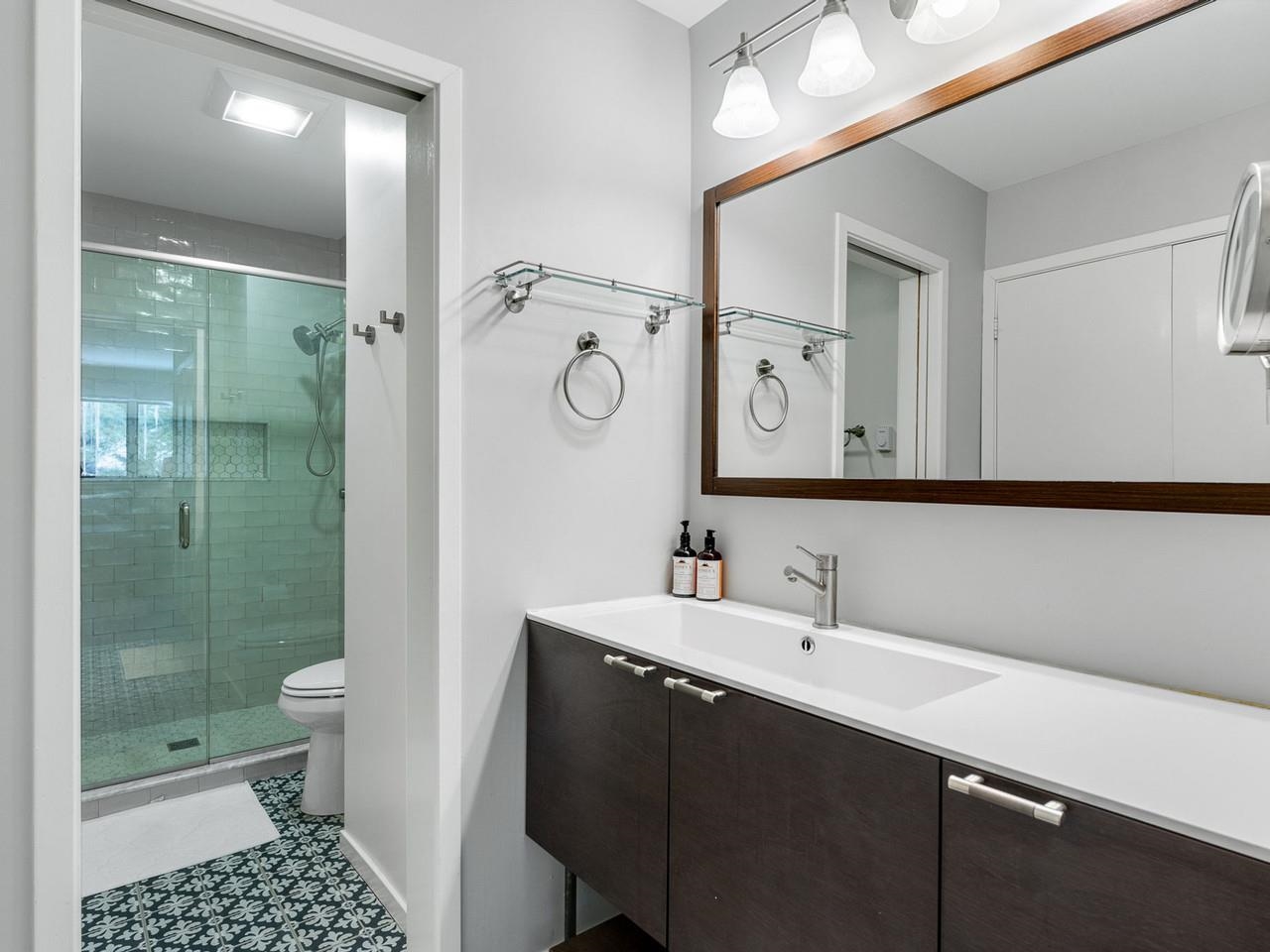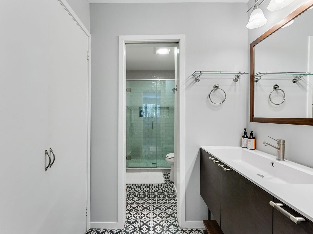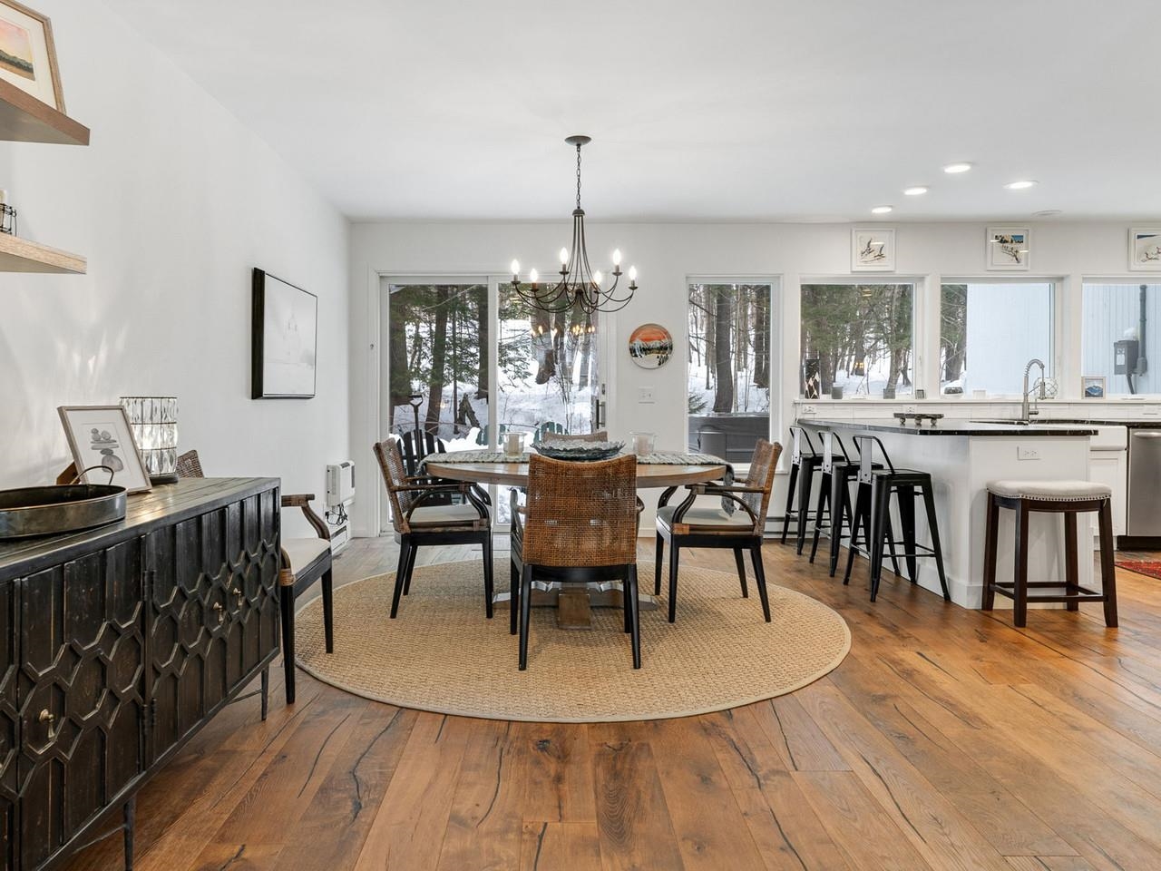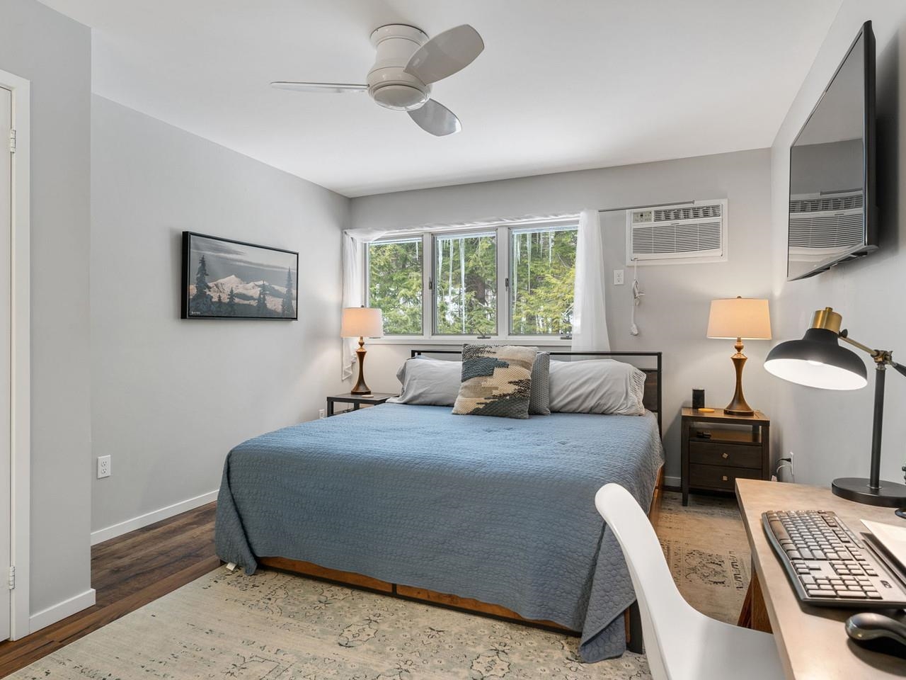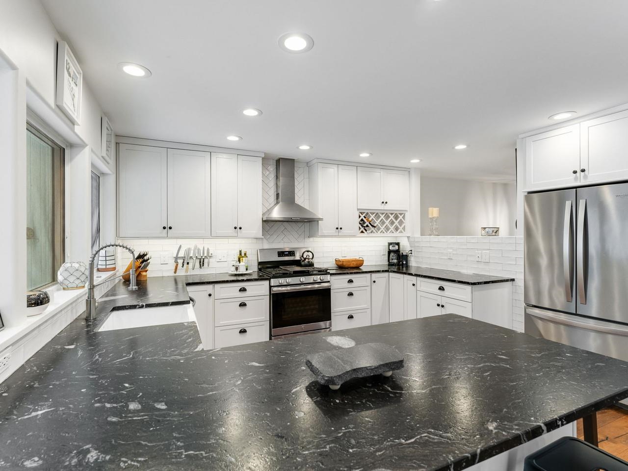 Classic, timeless renovations and sleek, modern furnishings adorn this spacious, professionally decorated townhome just minutes from Sugarbush Resort in the Mad River Valley. An enlarged kitchen features state-of-the-art appliances in stainless steel, a pro-quality gas range with hooded exhaust, farmhouse sink, subway tile backsplash, and leathered granite counters. Large windows bring in abundant light and fresh air. Abundant LED lighting makes the workspace bright and efficient. Hand-scraped wood flooring throughout, comfortable furnishings, and beautiful area rugs enhance the warmth and charm. Brick façade, barn beam mantel, and gas fireplace create a cozy atmosphere, and the large, wall-mounted TV is easy to watch. The upstairs primary bedroom includes a large, custom, tile walk-in shower with thick glass doors and plenty of room in a separate vanity area. Guest bedroom suite with private bath and large windows. Through the wall air conditioning in both bedrooms for those muggy, Vermont nights. The bonus room has been used as an office and extra sleeping area, but could be re-purposed to fit many needs, and 2nd floor laundry makes this the perfect primary or second home. Easy access to Sugarbush Resort and Mad River Glen from the shuttle that regularly comes through the complex, and right outside your front door!