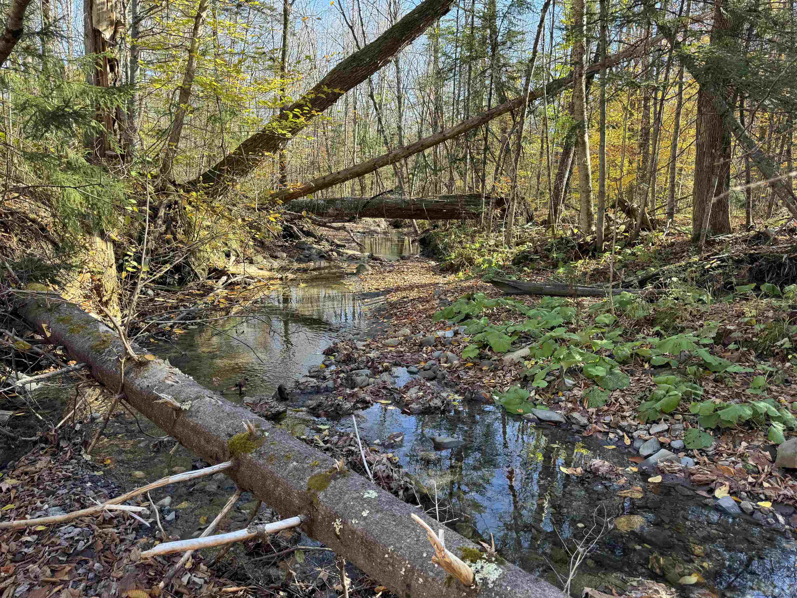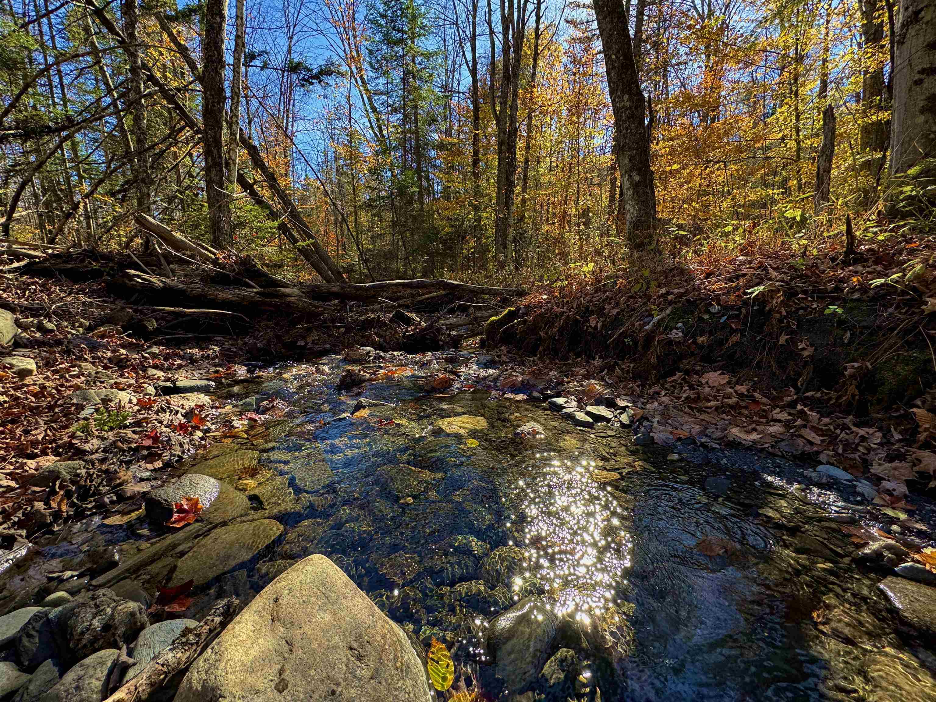 Truly one of the most peaceful and beautiful 25 +/- acre hardwood lots you'll ever walk around. Plenty of evidence of a variety of wildlife. A spring fed brook runs through the property from top to bottom and it did not dry up during the drought. In the past, the owners have seen fish and other critters in several swimming pools. A 24' x 24' unfinished camp is located just off the town road for convenient access year round. Washington Electric Coop services the property and other utilities are available, but not currently hooked up to the camp. With a top of the line standing seam metal roof, the camp is ready for your improvements. Inside the included storage unit is vinyl siding ready to be installed. A new shallow well jet pump system is included to go along with the buried water line to the brook as the seasonal water source for the property. The building appears to sit on concrete blocks. This property will NOT qualify for a residential loan. Cash, construction or land loans only.