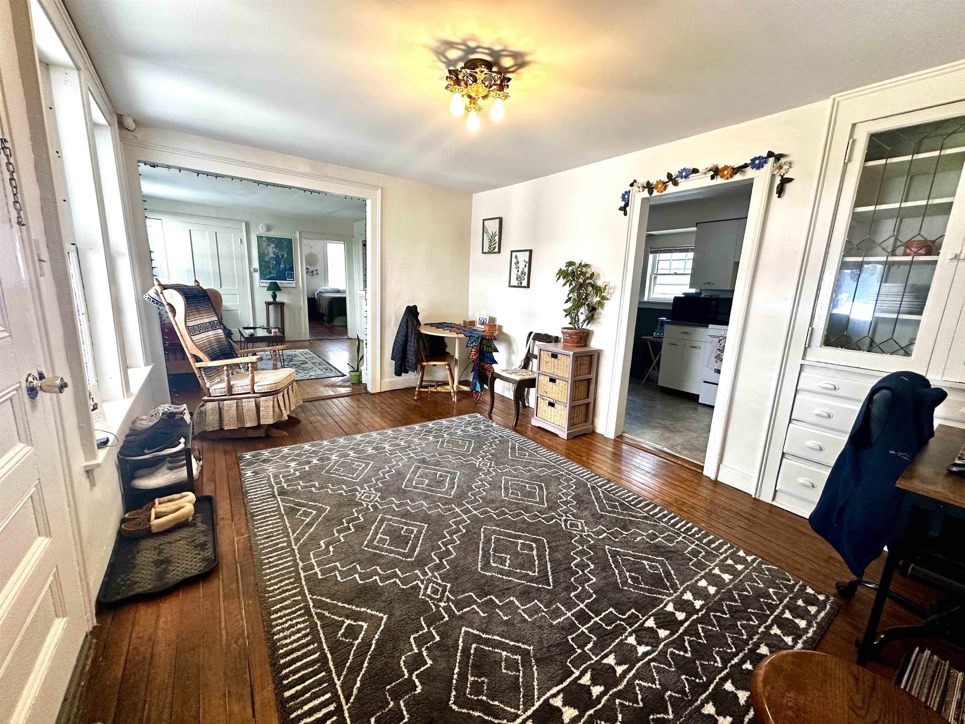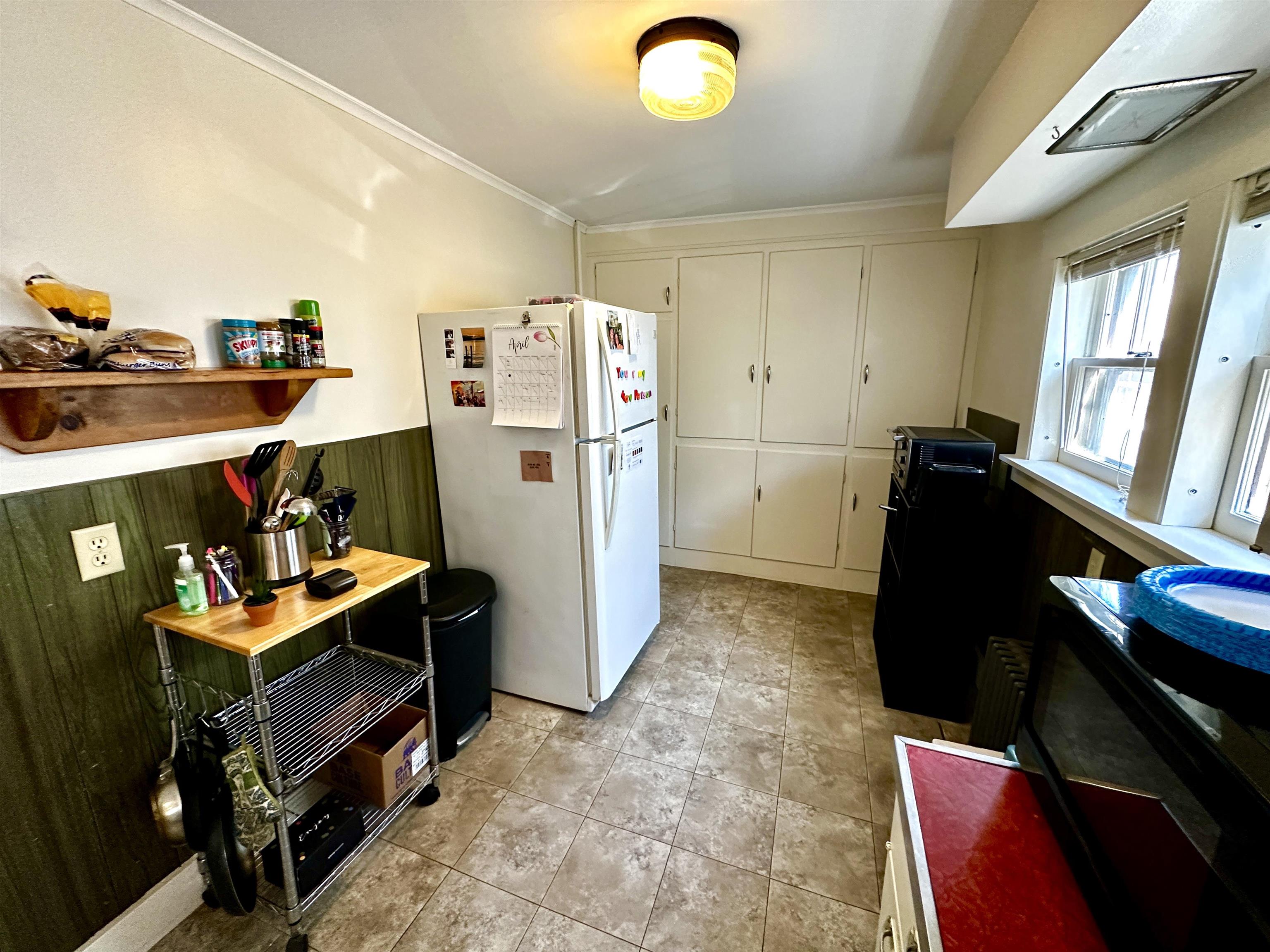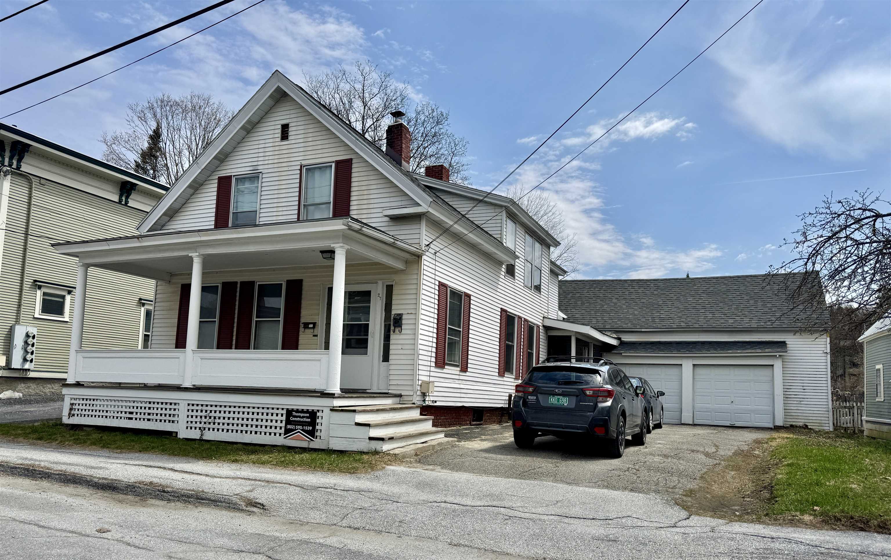 Great opportunity to own a spacious two-unit building in downtown Montpelier. The structure is not located in a flood zone and the is a LOMA attached. This two unit could easily be converted back to a SINGLE FAMILY HOME by just unlocking two doors! Both units are currently rented. The two car garage fits two small cars and there is storage on the second level. The building is located on a low maintenance tenth of an acre lot. Besides the garages, there is plenty of off street parking in the driveway. The first floor one bedroom unit is rented for $1,560/month and the second floor two bedroom unit is rented for $1,600. Heat (oil steam radiators), gas for ranges, water and sewer are included in rent. Tenants pay their own electric, hot water, trash, internet and cable. Each unit has a garage. There is a large storage space on the back of the building on each floor with stairs to the garage. The large fully equipped kitchens have gas ranges and full size refrigerators. Each unit has a covered porch at its private entry where a table and chairs could be set up to enjoy the lovely weather. Water came up through a hole in a drain in the basement in the July 2023 flood, but the drain has been fixed and a check valve has been installed to prevent future backflow. Water only came in to the basement in 2023 an no water came up in to the house.