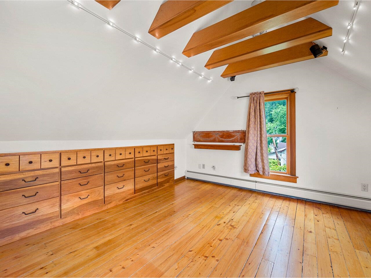 Tucked into a desirable downtown neighborhood just a stone's throw from the State Capitol Building and Hubbard Park, this gracious historic home has a large level side yard for gardening and is surrounded by beautiful mature trees. The original woodwork and hardwood floors are augmented by thoughtful updates such as an expanded eat-in kitchen with a cathedral ceiling and skylights. An attached two-car garage has been added so entry to a mudroom and half bath with laundry is most convenient. A back deck has leafy privacy and is a dreamy place for morning coffee. The finished third floor space is filled with sunlight from the windows and skylights as well as gorgeous built-in cabinetry. Truly in-town living with easy access to everything downtown Montpelier has to offer: restaurants, shops, Kellogg Hubbard Library, schools, and the Saturday Montpelier Farmer's Market is only two blocks away. This home awaits your personal touches to add to its ongoing history!
