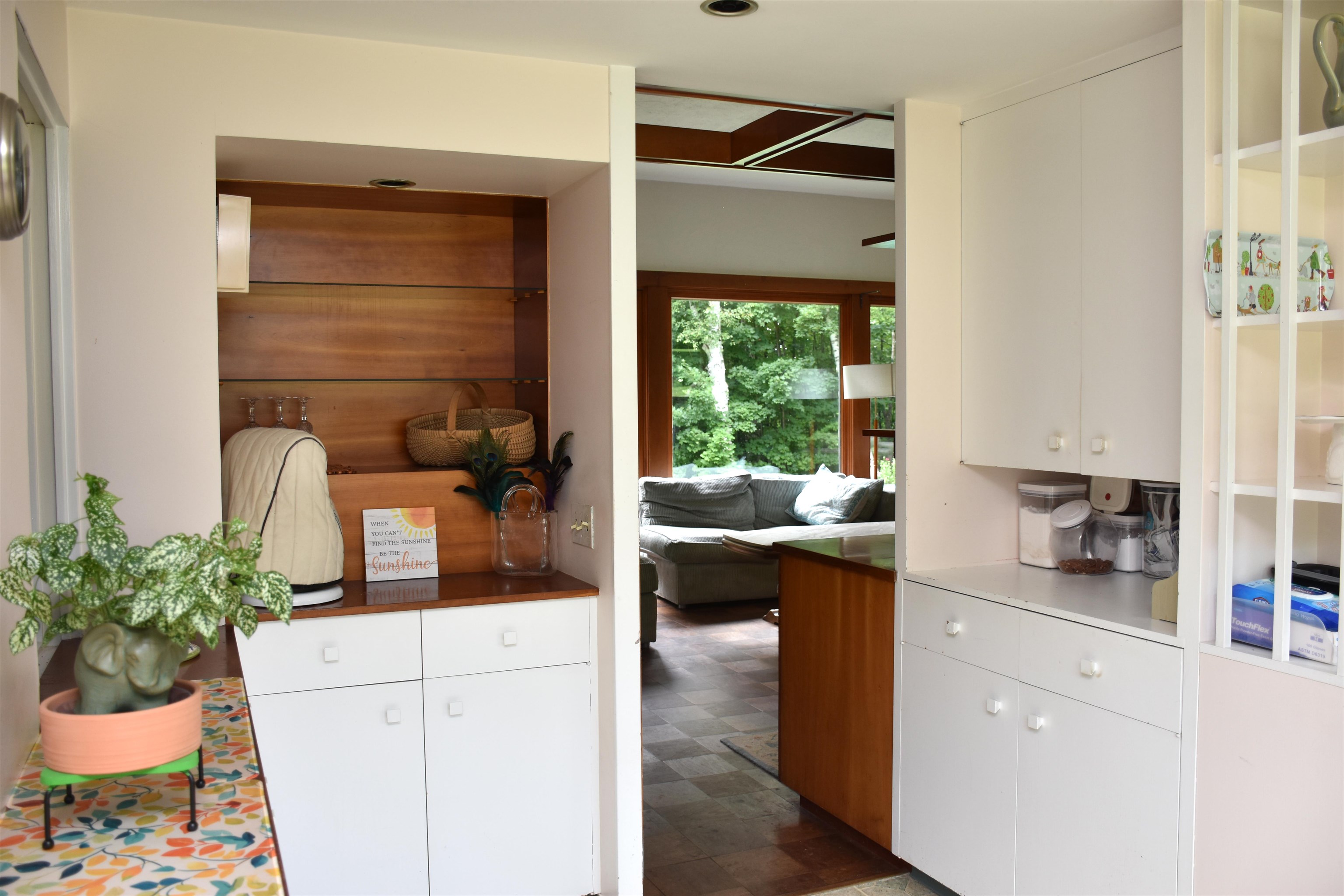 Woodlands Retreat in the City! A soothing 2-BR, 2 1/2-bath Mid-Century Ranch with spacious rooms and HUGE windows that bring the outside indoors! Lovely stone fireplace and parquet flooring in living room. Fully-equipped eat-in kitchen has plenty of counter space and cabinets. Both bedrooms are substantial enough in side and closet space that either could be considered the "Primary". Jack and Jill adjacent bathrooms are accessible from either bedroom. Built-in storage, nooks and crannies throughout. Three mini-splits keep the house cool and comfortable when its hot and muggy outside. First floor laundry with front loading appliances included. Still has its original charismatic flair for all of the Mid-Century aficionados out there! 8'x28; Screened porch with slate flooring. Top roof being replaced this week. 2-Car, direct-entry garage. 1.26 Acre surveyed lot offers many perennial garden plantings, wooded forest, and some lovely laid-up-stone walls, patio and walkways. I'd recommend that you put a viewing of this property towards the top of your list, right away!