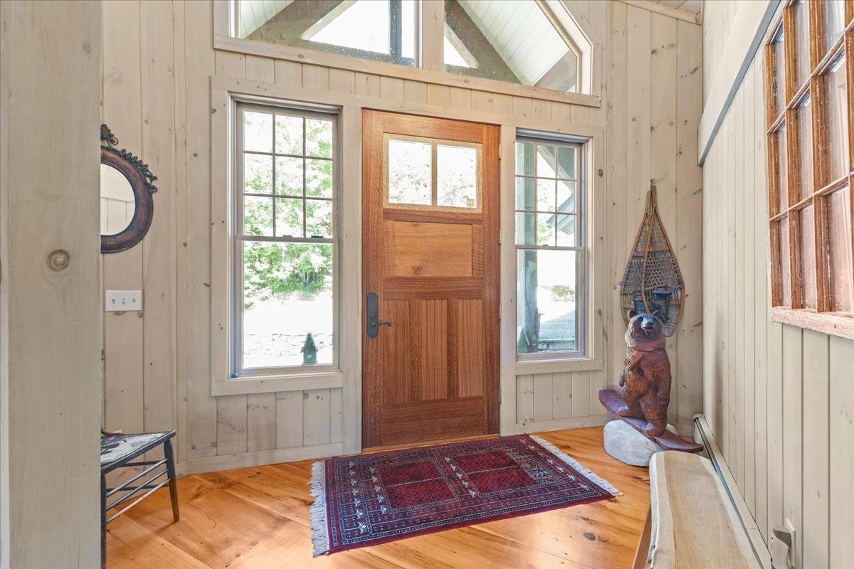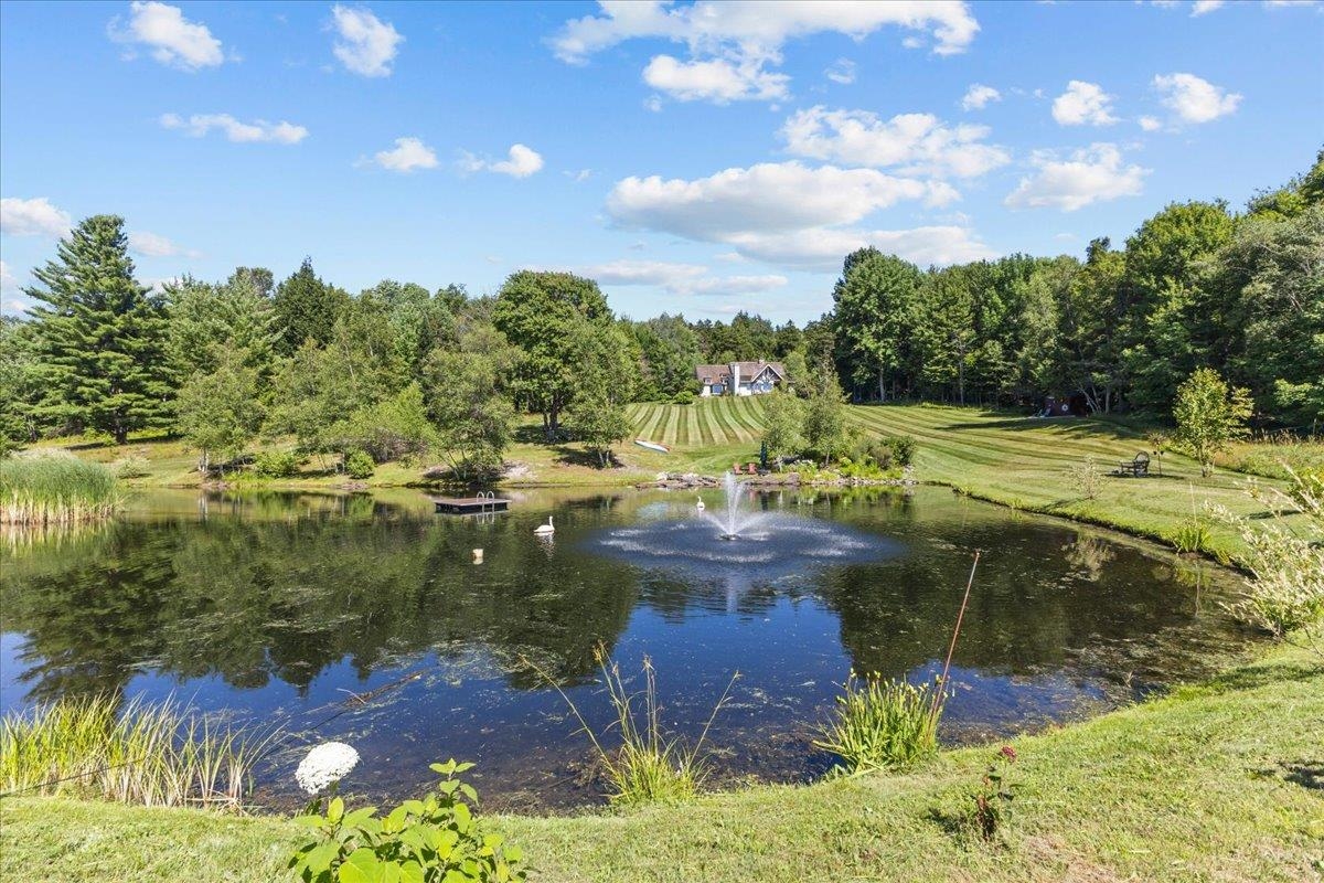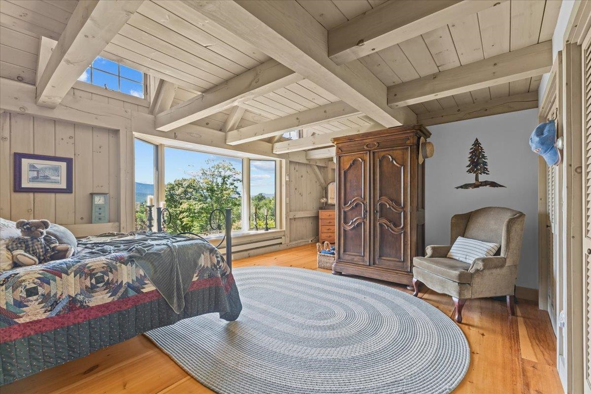 Open House Sunday, 10/12 from 3-5pm! Come see this beautiful reimagined post & beam home on nearly 40 acres in one of Waitsfield most coveted locations. 3 acres of cleared land reveals sweeping views of sugarbush mountain and ski trails, amazing sunsets & a beautifully landscaped pond with hidden dry hydrant. The remaining 36 acres are pristine woods & hiking trails that surround this property creating that much sought after peace and privacy. Thoughtfully redesigned, the 4-bedroom, 4.5-bath home blends timeless craftsmanship with modern systems and infrastructure. The expansive living and dining area centers around a wood-burning fireplace and a dramatic wall of windows that frame the breathtaking mountain landscape. The chef's kitchen--anchored by custom mahogany cabinetry--seamlessly connects to the three bay garage via a new mudroom and laundry room. Magnificent 12--24" wide barn plank flooring runs throughout the main level. Comfort is paramount with a 50,000 BTU wood stove, whole-house attic fan, six Mitsubishi split systems (in every bedroom, the office, and 2nd Floor bonus room), and a seven-zone heating system. The finished basement includes a 350-bottle wine cellar, Swiss-style sauna, snack kitchen, full bath, and media lounge perfect for game day gatherings. This beautiful one of a kind parcel includes high end furnishing, rugs and lighting. Exclusions apply for personal items and select antiques.