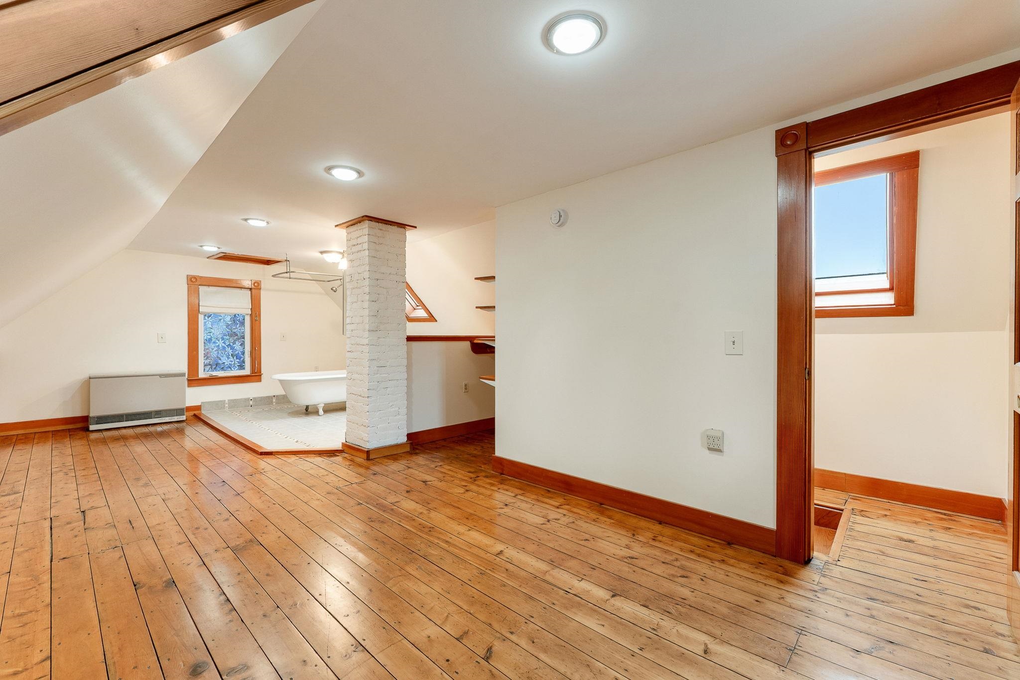 One of a kind 5 bedroom home with a one bedroom efficiency apartment. This classic Montpelier home has been renovated from the studs out. You name it, it's been updated--and in the right way. Insulation, windows, electric, plumbing. Bathrooms, kitchens, floors, roof, paint, furnace, and more! A large kitchen and a formal dining room (you don't have to be formal) are on the first floor, along with a living room and a pellet stove. Four bedrooms upstairs, plus a full bathroom. Then, and you're going to like this--the third floor is an entire primary bedroom floor. Spacious bedroom with its own bathroom. Give yourself a little space for when you want to be alone. For watching movies and writing poetry, that is. The apartment is a real gem. It's not big, but it's in good shape and it ALWAYS rents. Most recently it was getting $1100 a month. Or, if you want a first floor bedroom, it could easily be incorporated back into the main house. Driveway parking is behind the house, and works for 2-3 cars. Super convenient to downtown Montpelier's stores, restaurants, and the schools. Lots of space means lots of options! One real estate website implies that this is in a flood hazard area. It is NOT in the 1% flood hazard zone. **See 3D tour**
