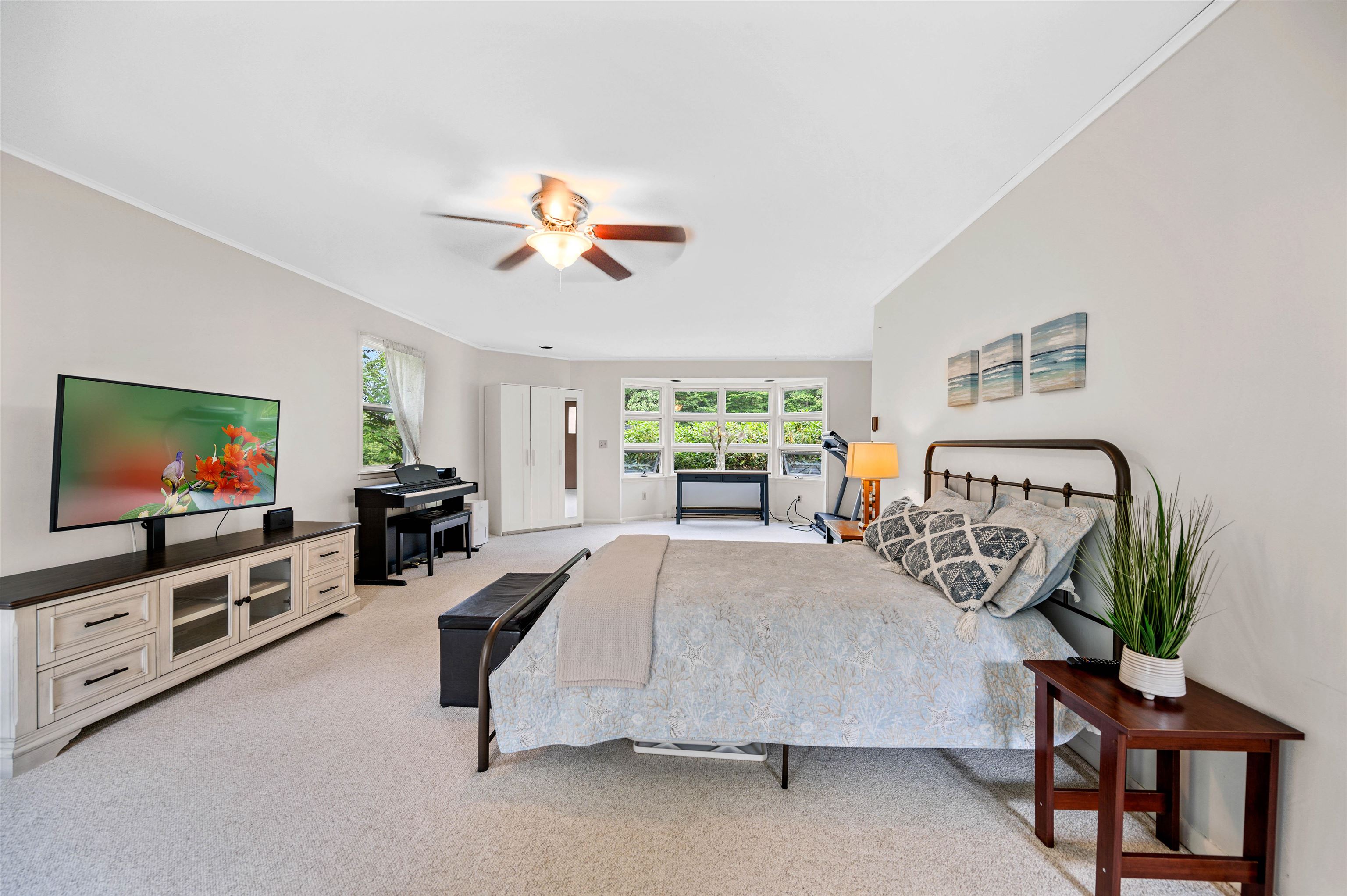 Picture yourself sitting by the pool, surrounded by gardens and peaceful views, living as you could only imagine. This stately home offers privacy, beauty, and flexibility all in one stunning package. Step into a sun-filled great room, with views of the inviting pool and backyard oasis. The beautifully renovated kitchen is a chef's dream, featuring Corian counters and state-of-the-art Wolf appliances. From there, the home flows seamlessly into the dining room and a cozy living room complete with a fireplace. On the main level, a spacious primary/in-law suite offers comfort and privacy, with a luxurious bath featuring a tiled shower and jet tub. Upstairs, another primary bedroom with ensuite bath and walk-in closet, 2 additional large bedrooms, and a perfectly placed office. This unique property also includes two income-producing one-bedroom rental units. See documents for approval as 3 unit rental. Additional spaces include a workshop garage, utility garage, and a large bonus/workshop/maker space--ideal for a studio, home business, or creative transformation. The solar panels offer efficiency and are fully owned. The outdoor space is exceptional: a sparkling pool area surrounded by gardens, a wooded backdrop for added privacy, and a large open shed/barn. A rare opportunity to own a truly special property that offers it all: excellent location, the perfect home and setting, income potential, and more!