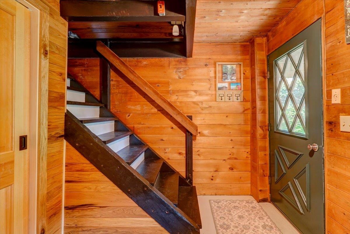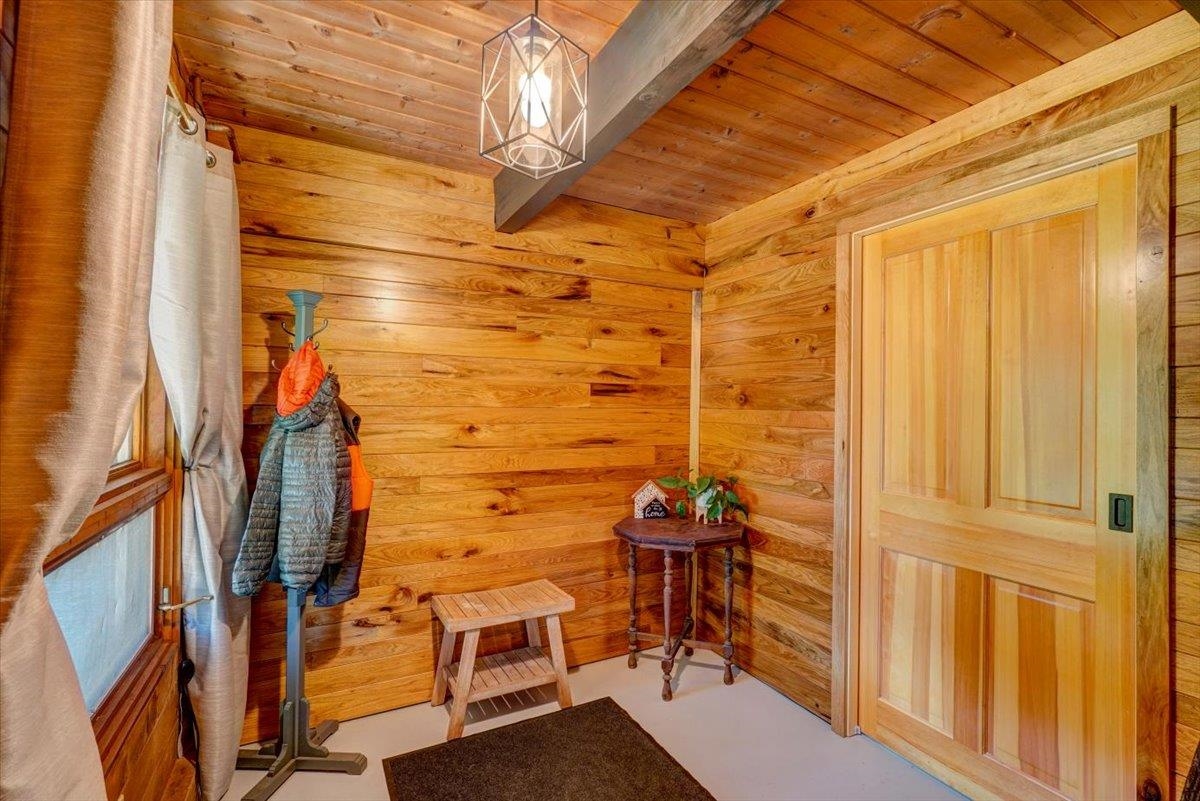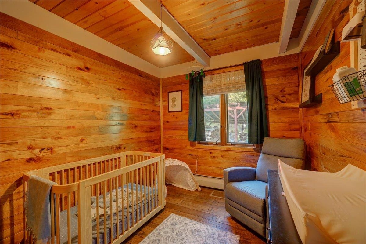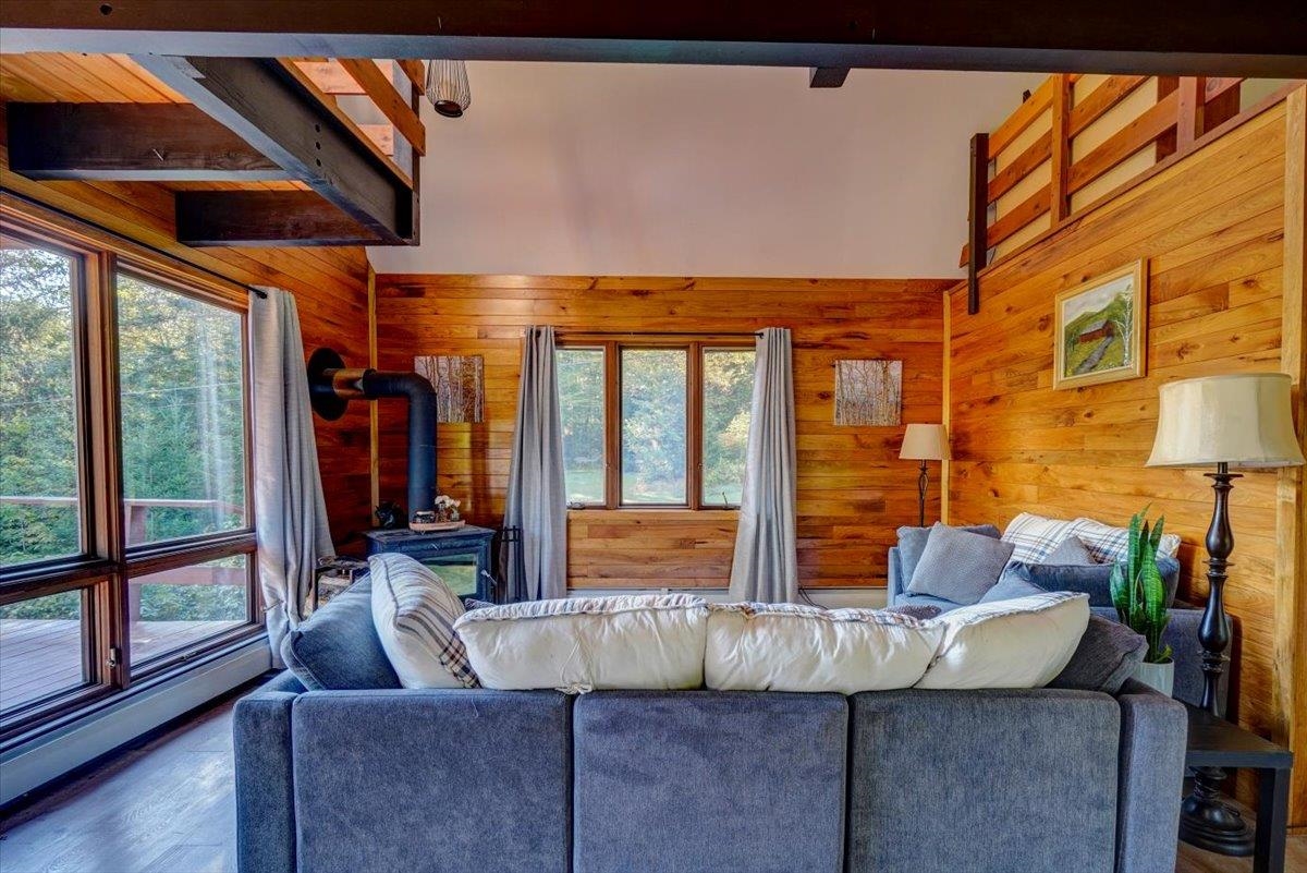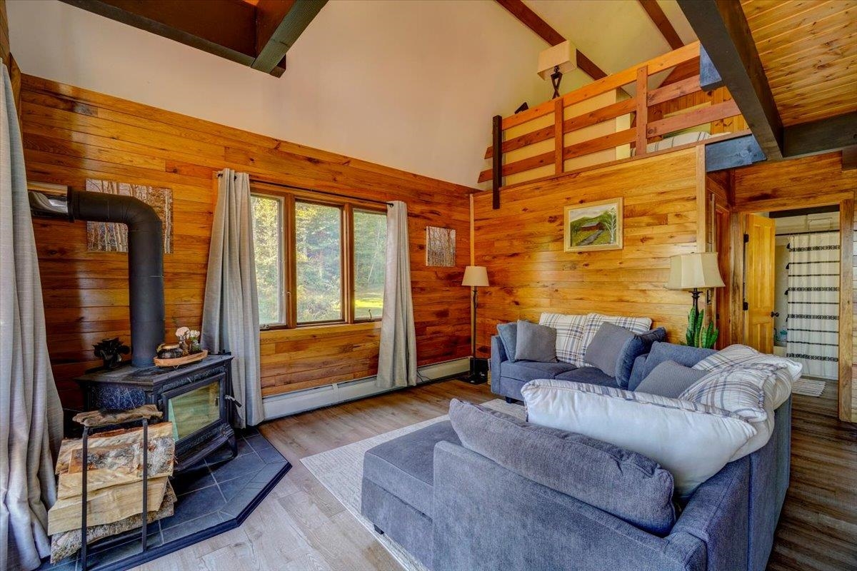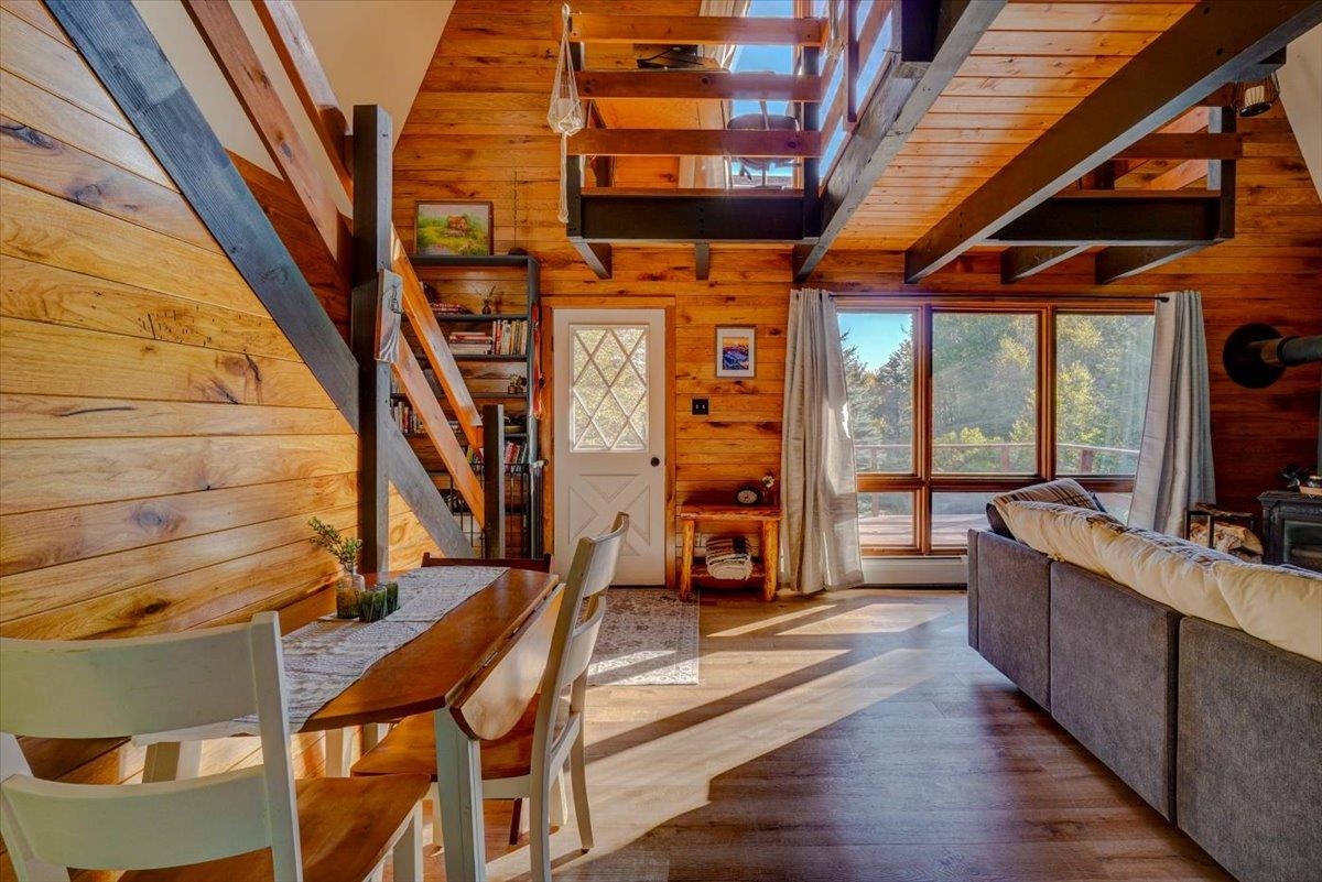 Set on 12 acres just 10 minutes from downtown Montpelier and I-89, this gambrel-style home offers privacy, character, and thoughtful updates. The exterior features a durable metal roof, wavy-wood siding, and a spacious deck--all freshly repainted and ready to enjoy. A 1 car attached garage with a 240v outlet wired in for your EV. Enter through the walk-up basement & practical mudroom, with a laundry area directly adjacent that adds storage and functionality. Inside, natural light highlights the warmth of wood accents, exposed beams, and built-in bookshelves. The main level includes a bedroom, a living room with a wood-burning stove and updated tongue-and-groove walls. The kitchen features freshly painted walls, wood cabinets with new hardware, and a large pantry, while the bathroom offers a new vanity and fixtures. Oversized picture windows brighten the living spaces and connect seamlessly to the expansive deck. Upstairs, the loft offers a bedroom with large closet, built-in bookshelves, and a unique catwalk overlooking the main living area--an ideal spot to take in mountain views and the home's inviting atmosphere. For those looking to downsize, this property offers efficient living with room to enjoy the outdoors. For buyers who need more space, this property offers opportunities to expand or customize to suit future needs. Outdoor enthusiasts will love the mountain views, trail loops exclusively on the property, close proximity to the VAST Trail, and other recreation areas!