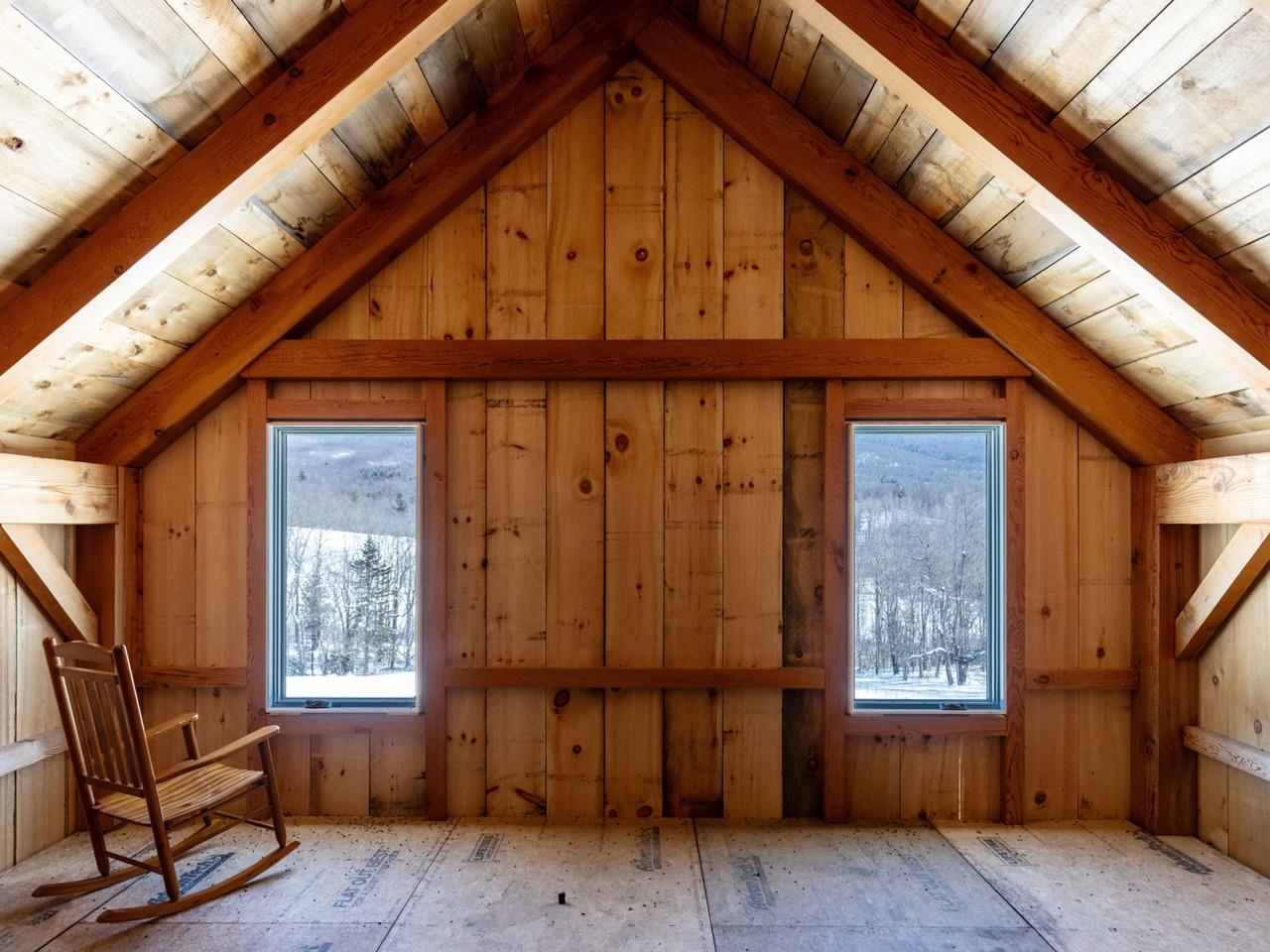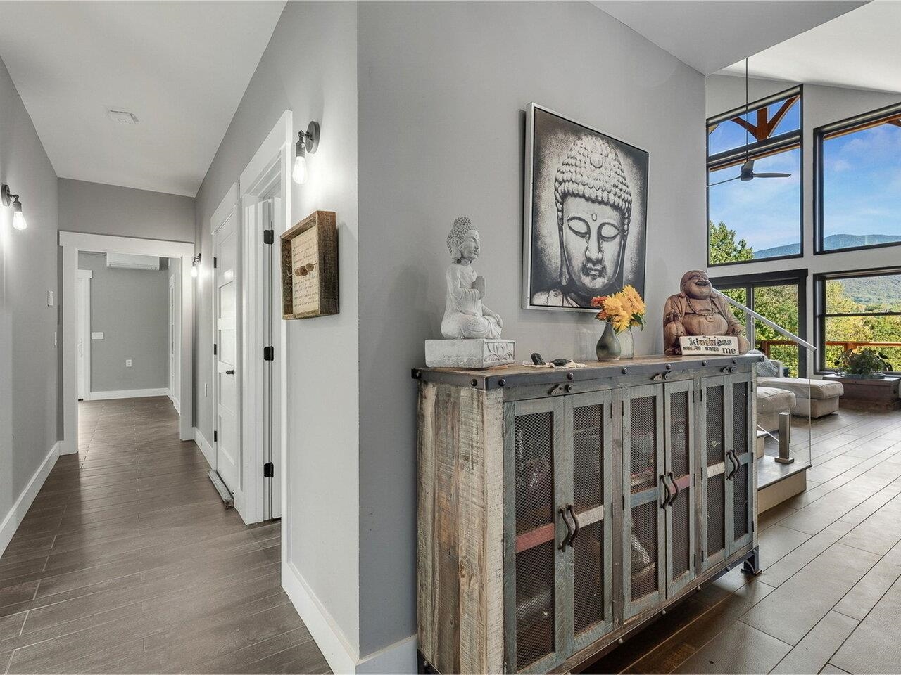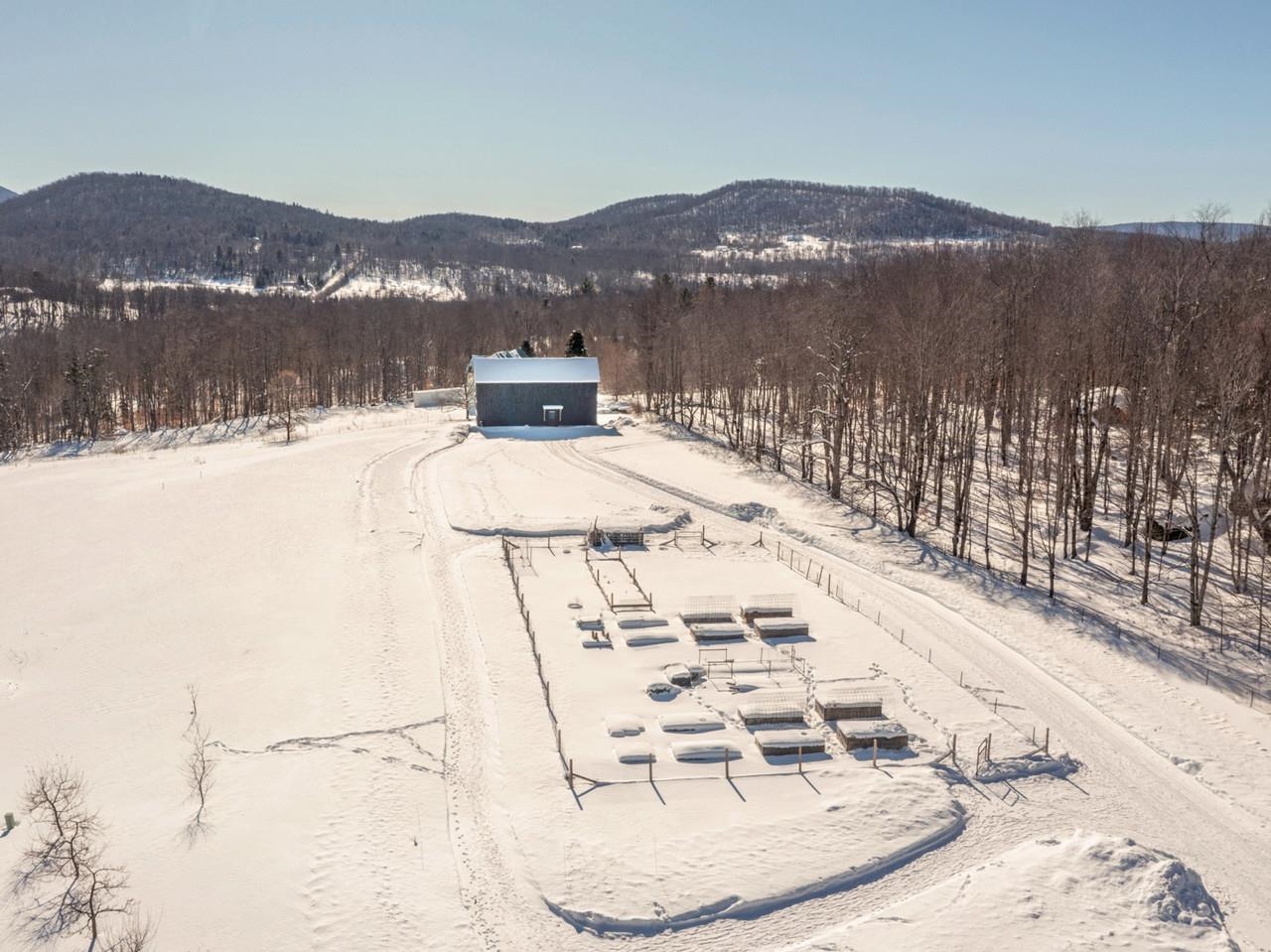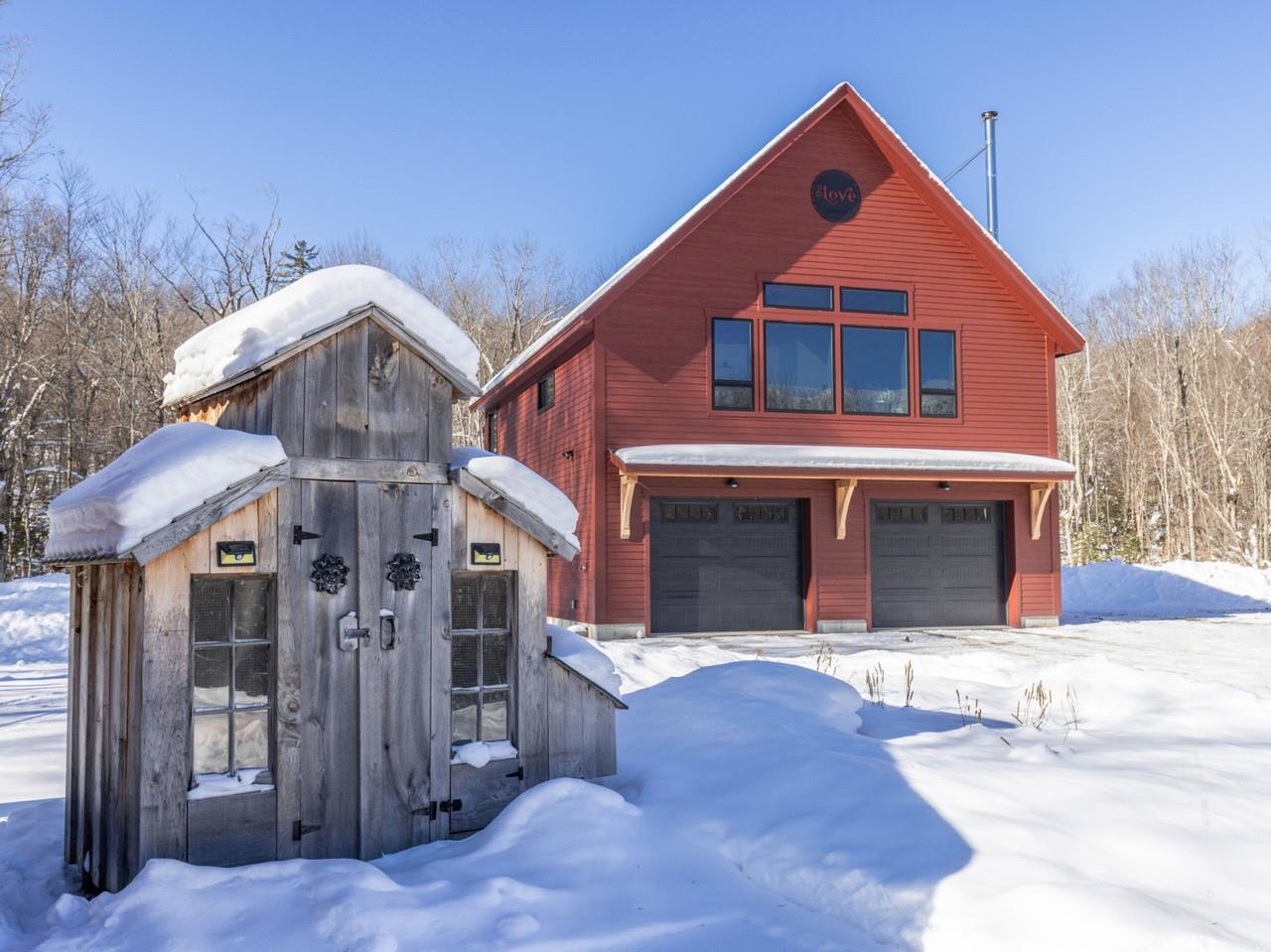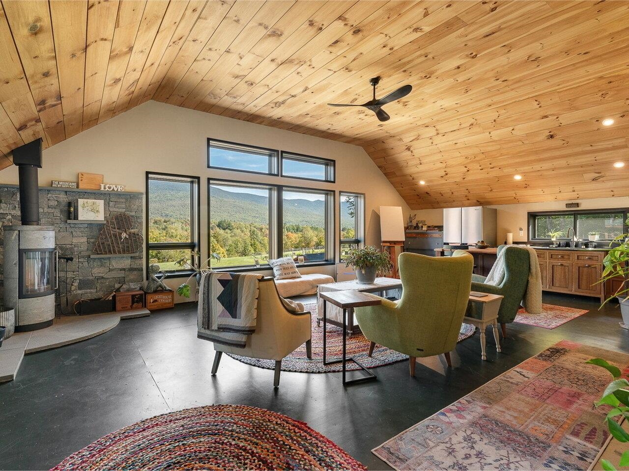 Alpenglow Meadows: A custom modern chalet on 24+ pristine acres with two deeded lots. This luxury property offers complete privacy with stunning mountain views and sustainable living. The open-concept kitchen features high-end appliances, a quartz waterfall island, and a custom maple bar, flowing seamlessly into dining and living areas with lofted ceilings and a 10' x 36' covered porch with timber frame accents. The first-floor primary suite allows for aging in place, while the loft and walk-out lower level provide flexible entertaining spaces. The landscape inspires with established gardens, fruit orchard, specialty nuts, and hundreds of sugar maples for tapping. Restored wetlands attract native wildlife, private forest trails invite exploration, and a babbling brook offers serenity. Adjacent lot #243 features a stunning 18' x 48' Douglas Fir barn with a full loft and soaring mountain views. Best of all, permits are in place for a 4-bedroom home - perfect for expansion or subdivision. Located just 20 minutes from Mad River Valley and 12 minutes to downtown Bristol, this peaceful property offers the perfect blend of nature and luxury for homesteading or personal escape.