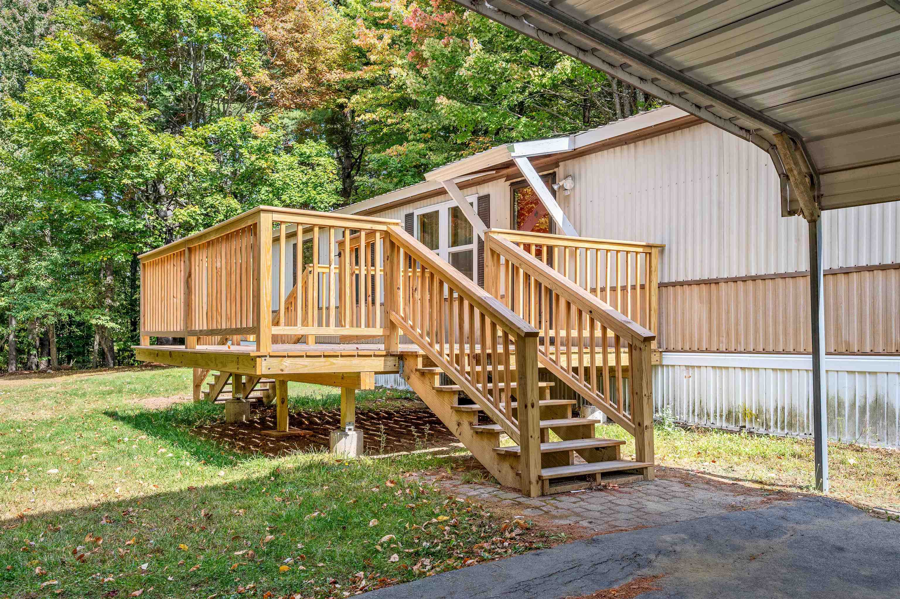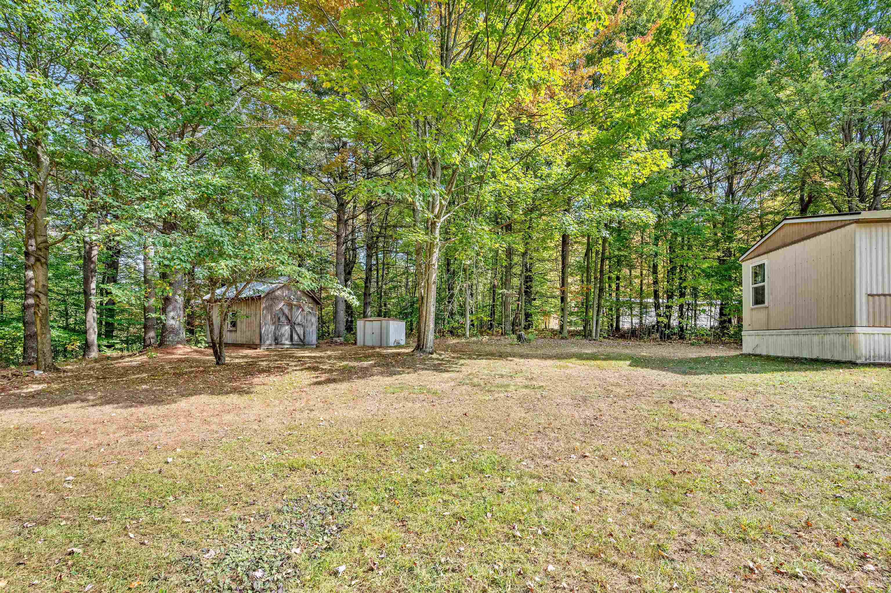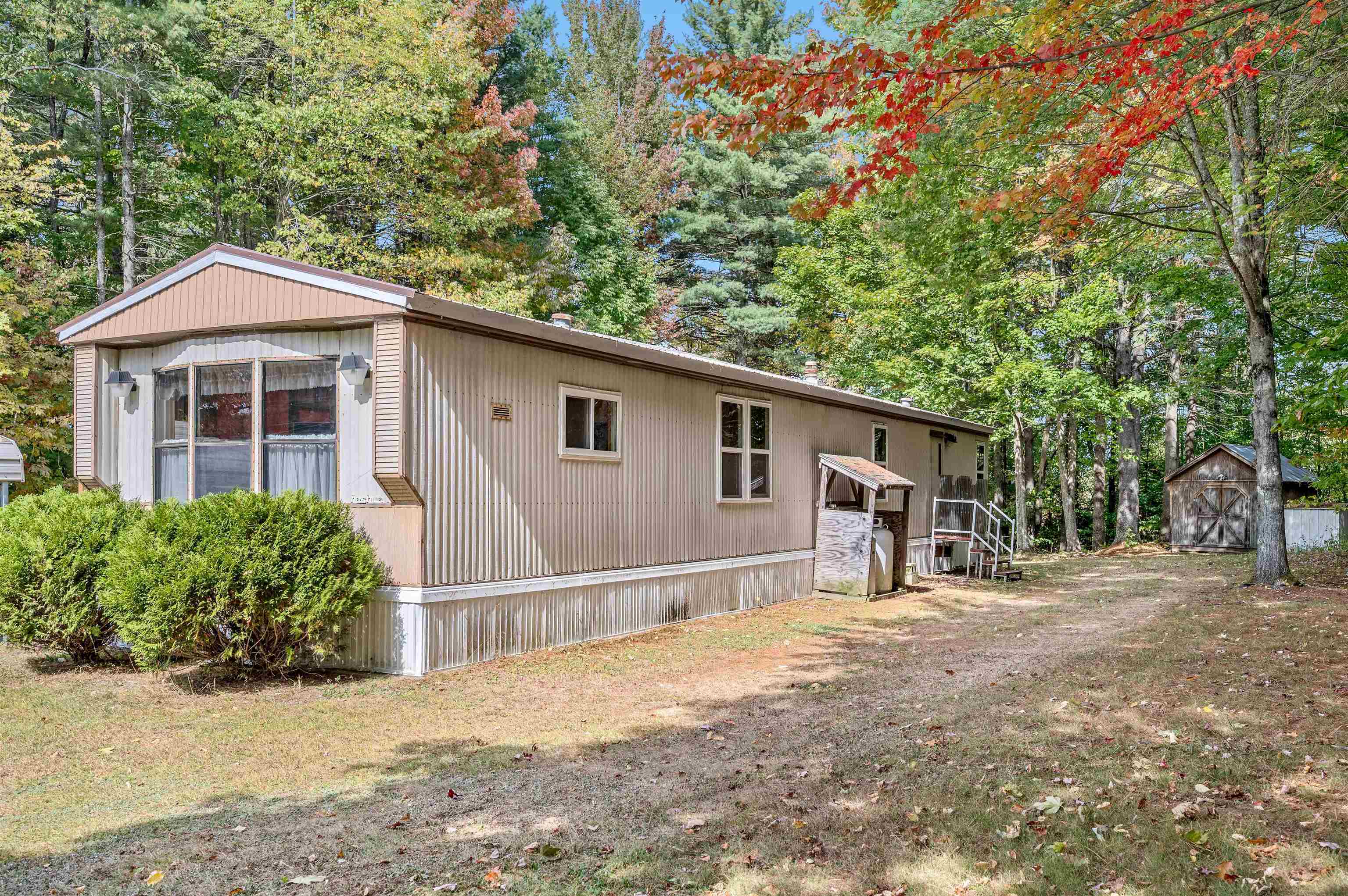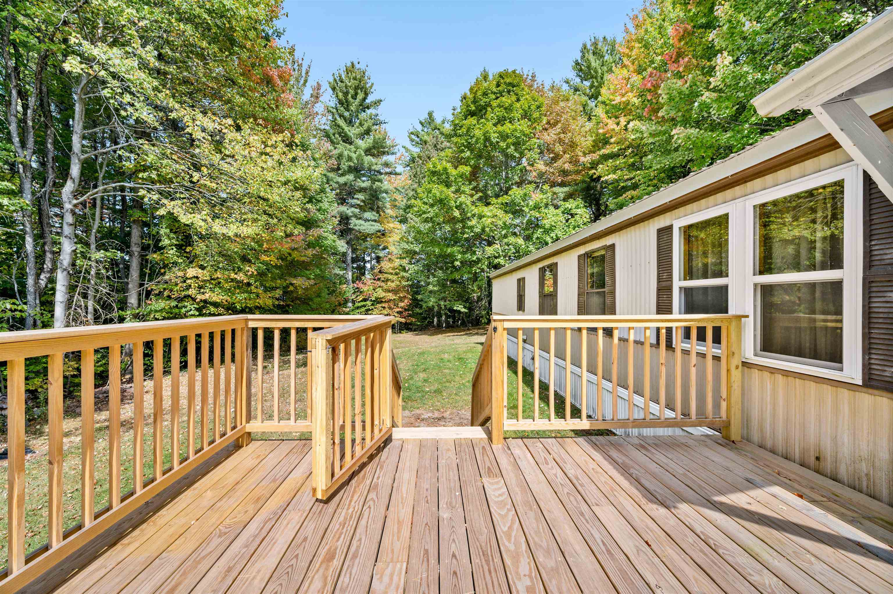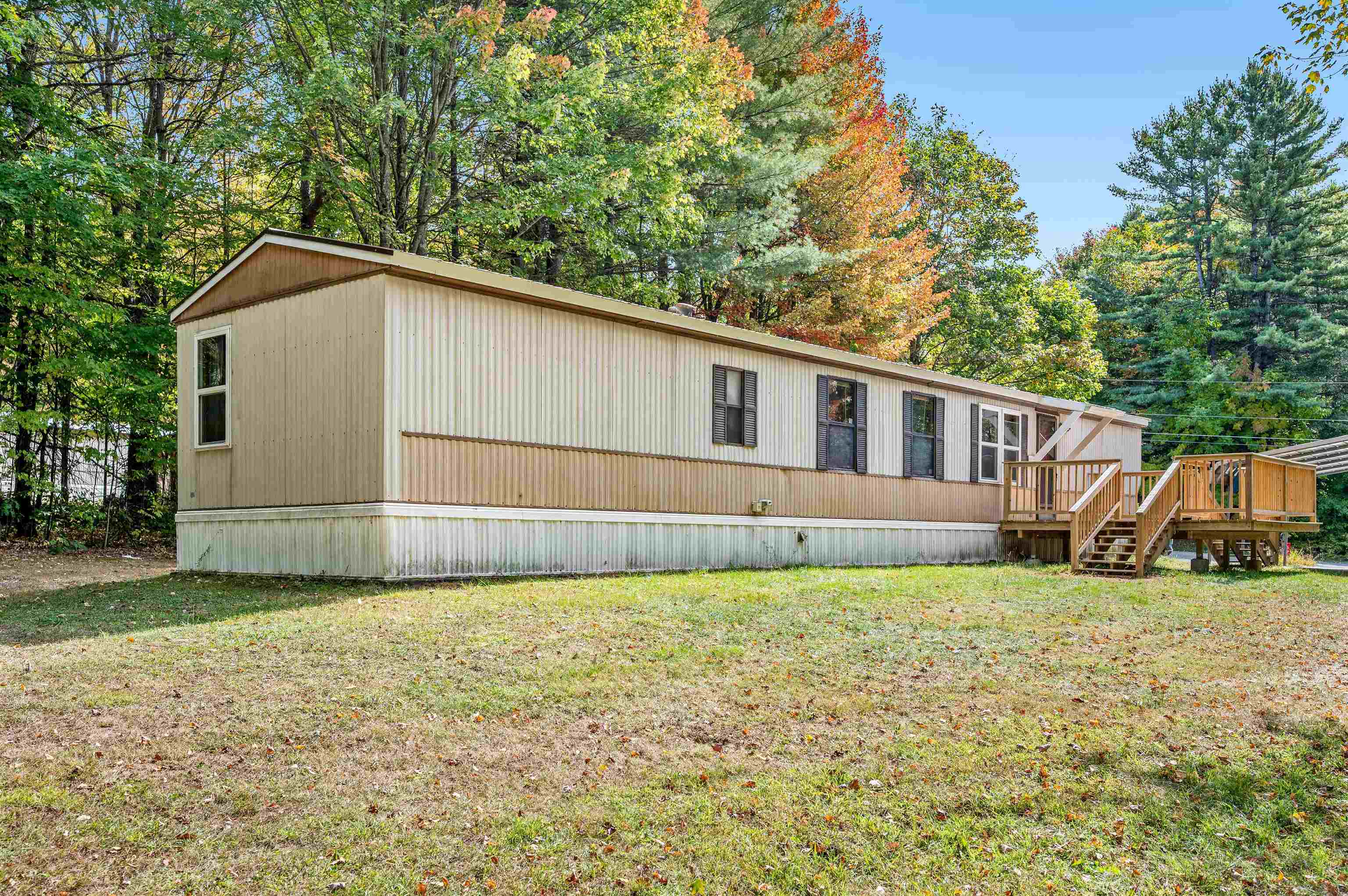 Discover easy living in this two-bedroom singlewide mobile home, situated on a generous 0.91-acre lot at the end of a quiet cul-de-sac. The home features a functional layout including an eat-in kitchen, living room, and a full bathroom with a stand-up shower. The bathroom is conveniently connected to the main living area and the primary bedroom. The layout includes space to easily accommodate the addition of a tub. The exterior boasts a large, level, private yard with a 14x14 deck and two sheds for storage. Enjoy the convenience of town water and sewer, a carport, and a paved driveway. This convenient location is within walking distance to a local store, and close to town recreation fields and the town bike path. A great opportunity for comfortable living with easy access to amenities. Open House 10/4 from 12-2pm.