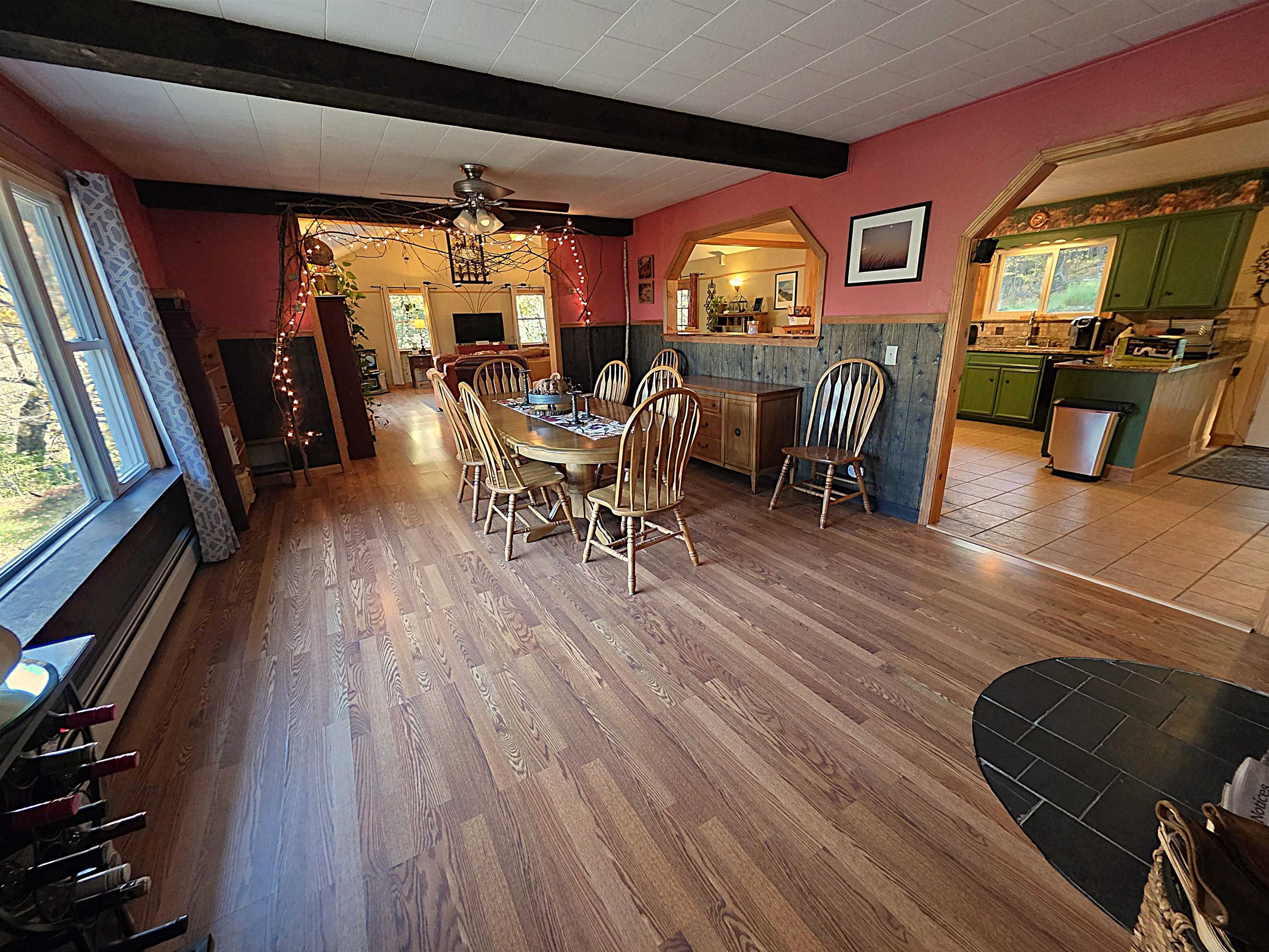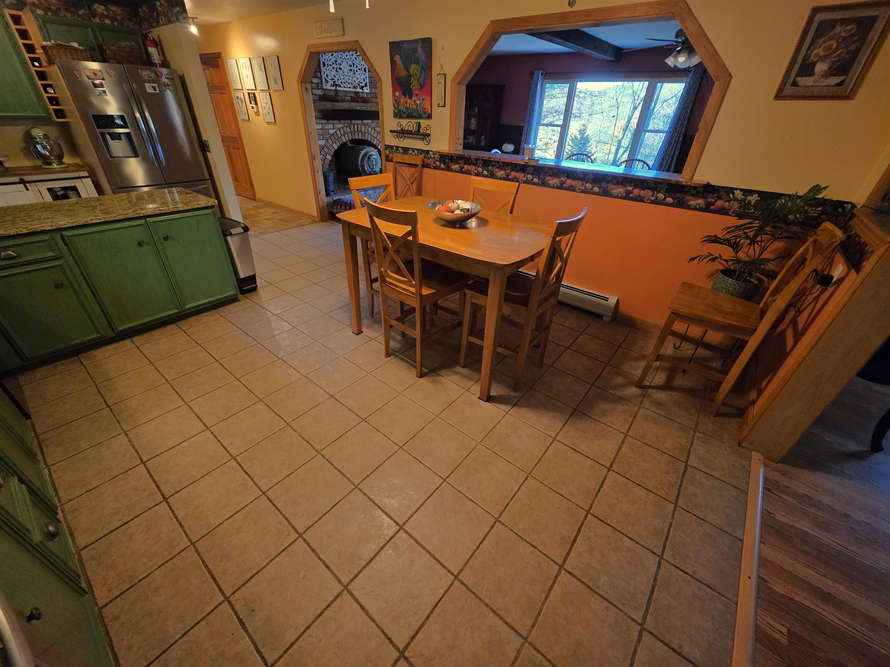 Discover your dream home nestled on a generous 12-acre lot, offering a perfect blend of privacy, comfort, and versatility. This spacious residence is thoughtfully designed to cater to a variety of lifestyles & provides abundant indoor and outdoor spaces for relaxation, entertainment, and everyday living. Enjoy the tranquility of country living with plenty of space for recreation, gardening, or simply soaking in the natural surroundings. Garage offers ample covered parking and storage for vehicles, equipment, and more. The unique topography adds character and offers potential for creative landscaping. Outdoor Shower & Hot Tub unwind under the open sky or enjoy a soothing soak year-round. Enclosed Deck Area: Perfect for entertaining guests or enjoying your morning coffee while being sheltered from the elements. Take in the scenic vistas from multiple vantage points throughout the home. Spacious Living Room featuring a cozy pellet stove to keep you warm and comfortable during the colder months. Large Dining Room with Hearth ideal for hosting family gatherings and special occasions. Generous Kitchen with plenty of counter and storage space for the home chef. Primary Bedroom Suite located on the main floor, complete with a private half bath for convenience. Second Bedroom & Full Bath alsoon the main floor add comfort and flexibility for family or guests. Family/Game room in the lower adds versatile space that can be used for many things! Some furniture optional!