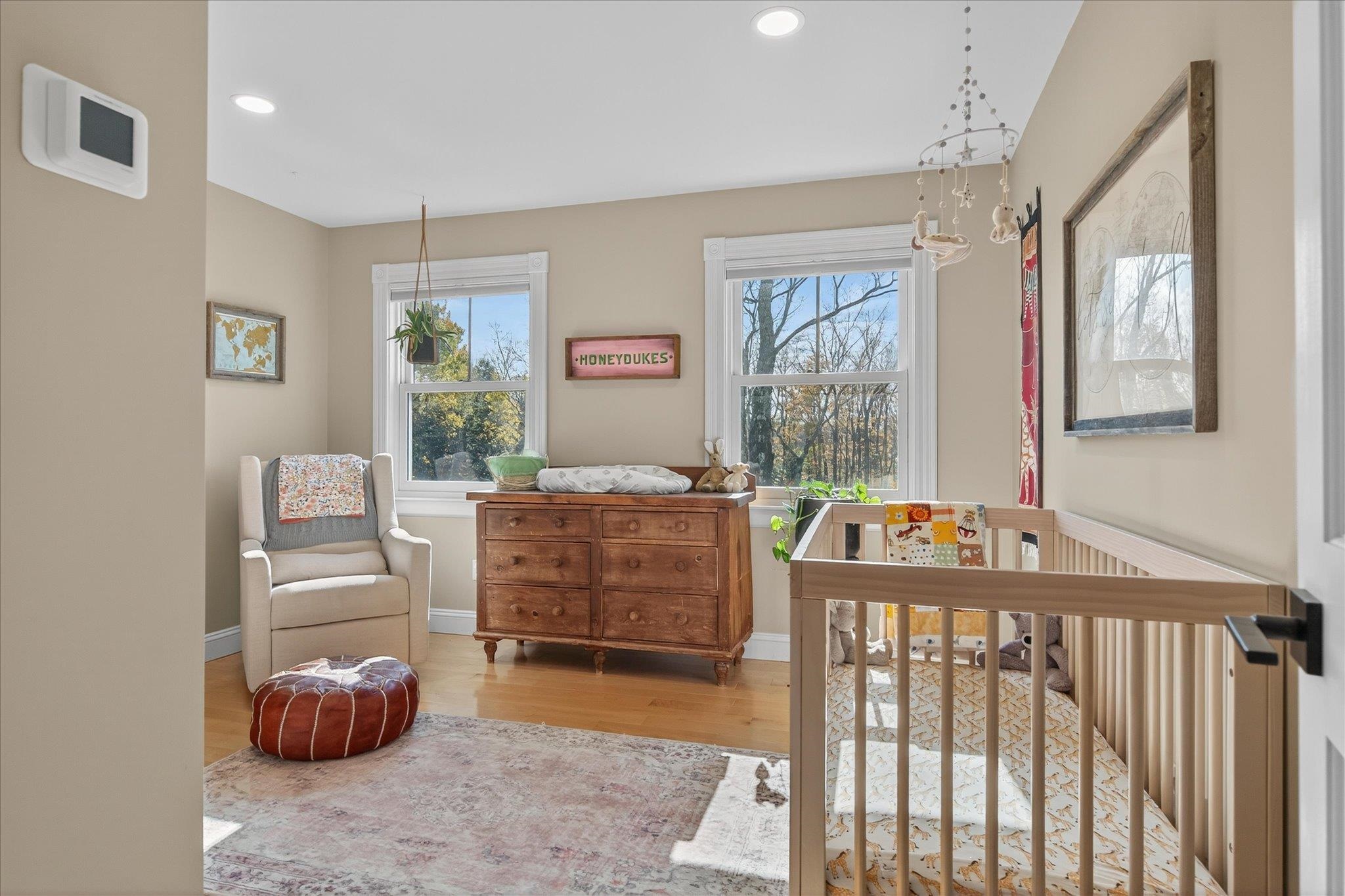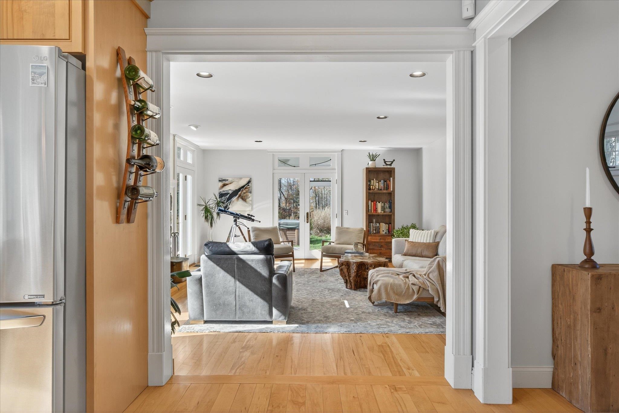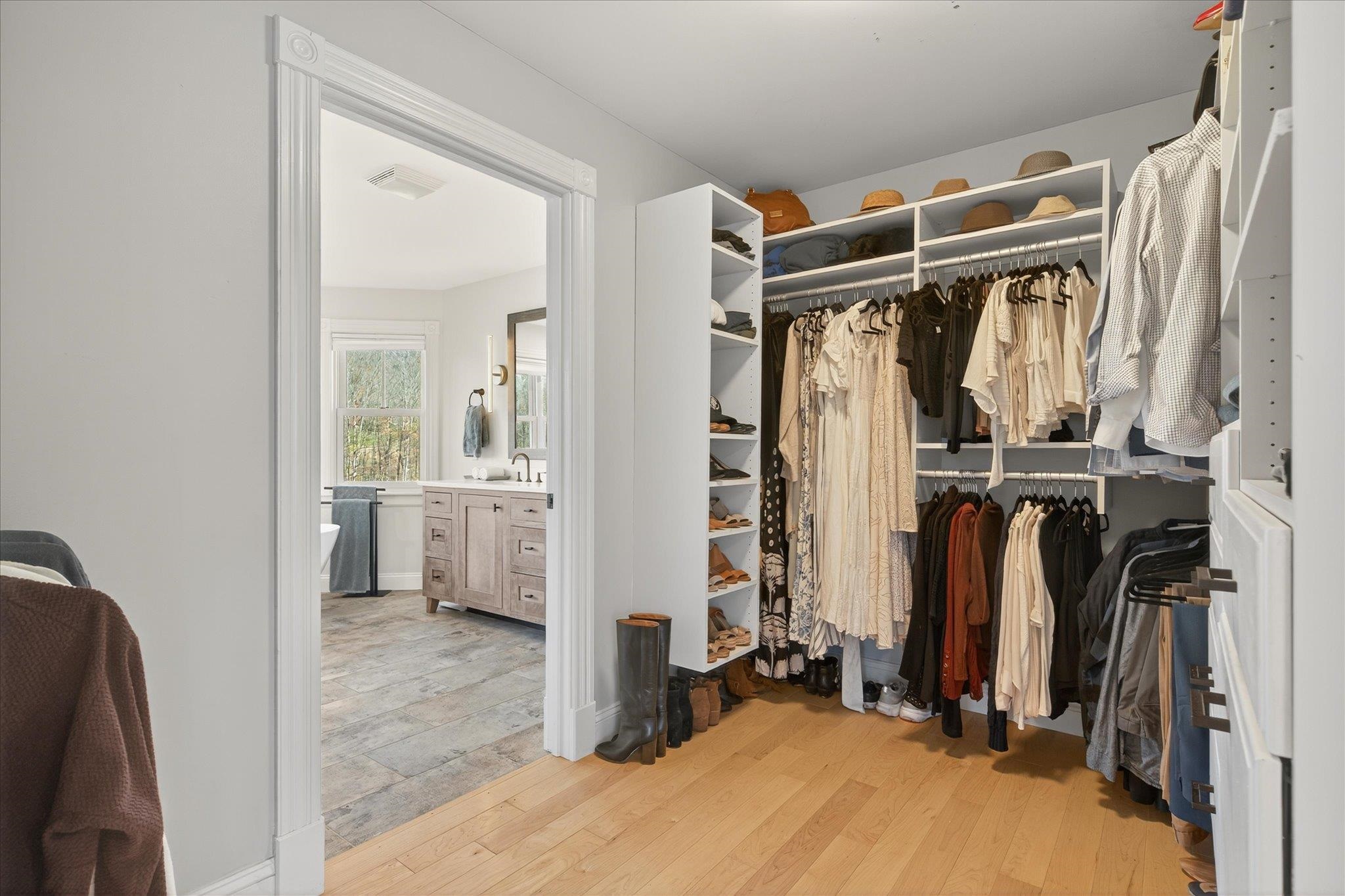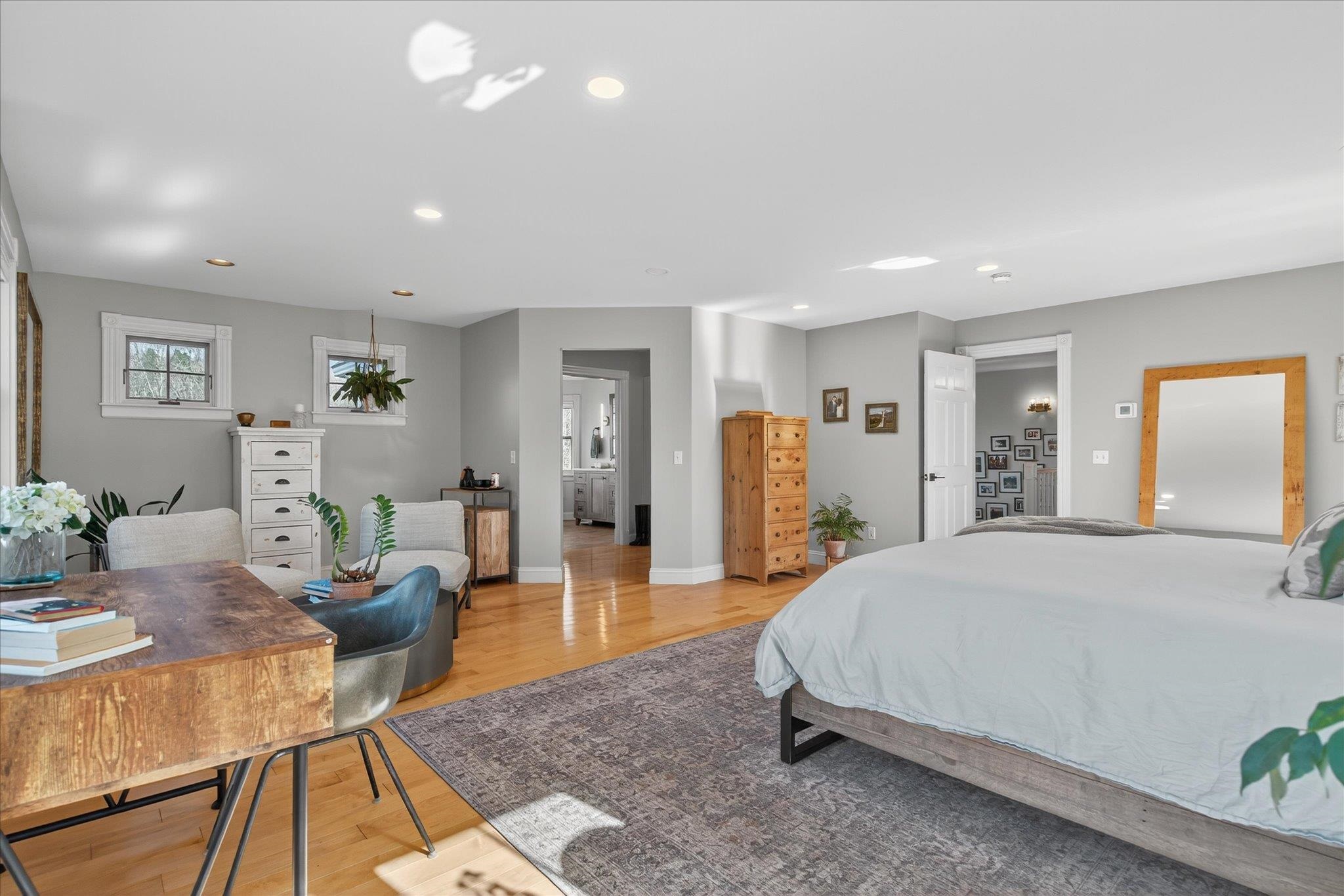 Experience the perfect balance of Vermont serenity and modern sophistication in this stunning 4-bedroom, 4-bath home set on 10.09 private acres of open meadows and peaceful woodland with breathtaking views of the Worcester Mountain Range. Sunlight pours through the abundant windows and doors, highlighting the warm maple floors, elegant stone wood-burning fireplace, and the spacious kitchen featuring birch cabinetry, granite countertops, and ample room for gathering. The primary suite is a true retreat, complete with a custom walk-in closet with built-in shelving and a renovated spa-inspired bath showcasing a double vanity, tiled shower, and oversized soaking tub--a serene escape to unwind and enjoy the timeless tranquility of Vermont's classic landscape. The lower level offers even more flexible living space with a large recreation room perfect for a gym, game room, or media lounge, plus two additional rooms for guests or home offices and a full bathroom. The exterior access to the basement adds convenience & flexibility. Step outside to enjoy the stone patio, covered porches, and relaxing hot tub surrounded by the sights and sounds of nature. Freshly painted and move-in ready, this home perfectly blends privacy, natural beauty, and accessibility--just minutes from world-class skiing, scenic hiking trails, the Waterbury Reservoir, and Waterbury's charming downtown shops and dining. Explore the 3D tour and cinematic video to experience this exceptional home firsthand!