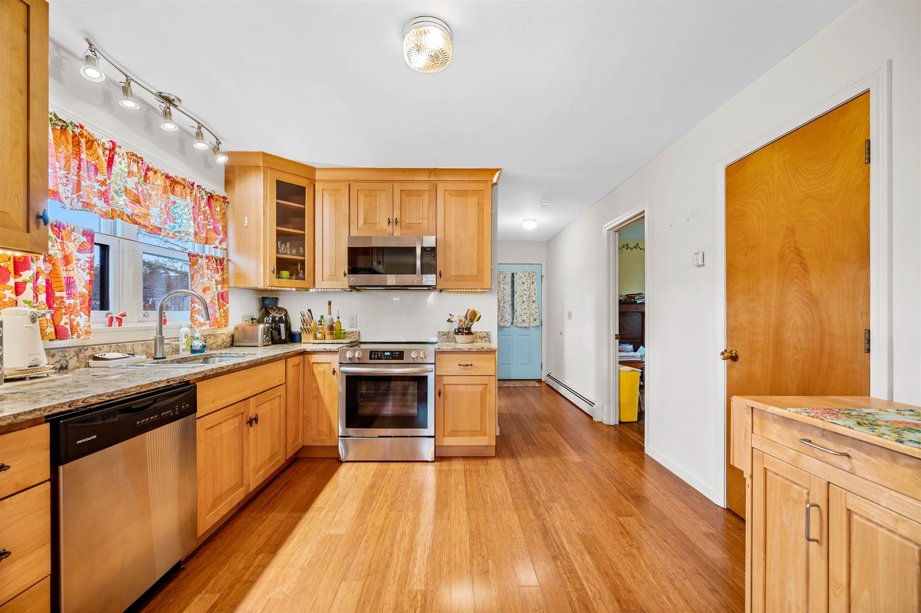 Offered for the first time by its original owner, this warm, modern Cape invites you to live with ease in one of Montpelier's most connected neighborhoods. Tucked into the Stonewall Meadows community, where sidewalks lead to the nearby city park and downtown is just minutes away, this house blends practical upgrades with an easygoing layout. Inside, the kitchen is made for real-life moments: maple cabinetry, stone countertops, and stainless steel appliances open to a dining area that spills out to a sunny deck with retractable awning. In the living room, a cathedral ceiling with skylight lets the light pour in, while a gas stove adds just the right kind of cozy. The main floor offers the flexibility of a bedroom or office, plus a renovated bath with accessible features. Upstairs, find more room to rest, work, or play in an open loft, a bedroom with another skylight, and a second full bath. But the hidden gem? A full walk-out basement that opens to a covered stone patio and backyard, perfect for cool evening hangs or your next big project. Close to Montpelier's shops, schools, Central Vermont Medical Center, Berlin Mall, and I-89. Come see what it feels like to live in a home that just fits.
