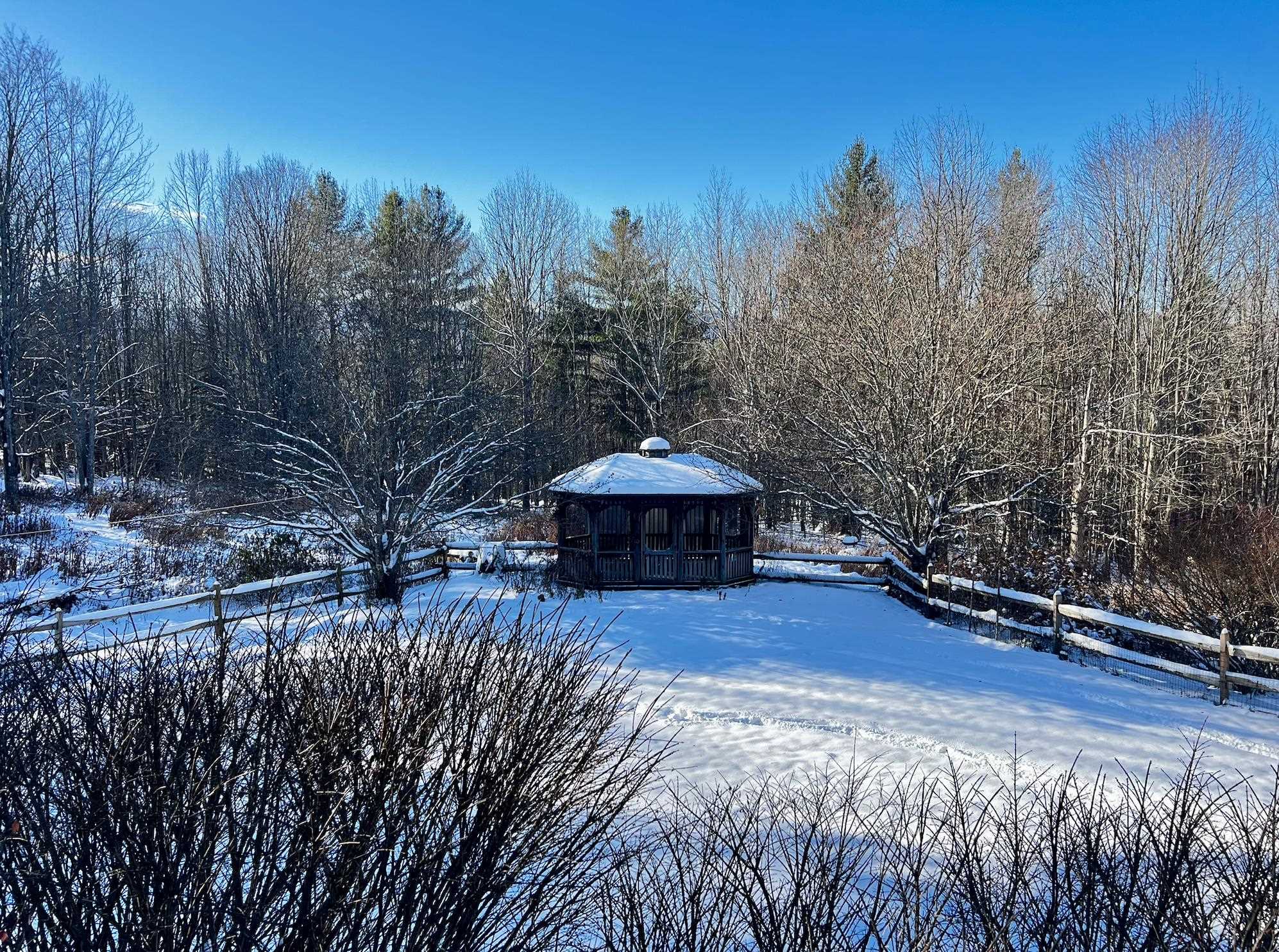 Discover a private 4.15-acre retreat in Waitsfield, just minutes from Sugarbush and Mad River Glen. This well maintained 3 bd/3ba Cape/Colonial offers nearly over 2500sqft of comfortable living space with wood accents, a cathedral living room with exposed beams and a wood-burning fireplace. The main level provides an open layout with natural light and a seamless connection to the outdoors. A fenced lawn and wooded surroundings enhance privacy, while a large gazebo creates a welcoming space for gatherings. The lower level includes a walkout entrance, finished bonus space, and interior concrete floor access. Additional features include a 2 car garage, covered porch, ample storage and a poured concrete foundation. With country setting, mountain views, and proximity to trails, skiing, golf and local amenities, this home is suited for full time living, a seasonal getaway or an investment opportunity.