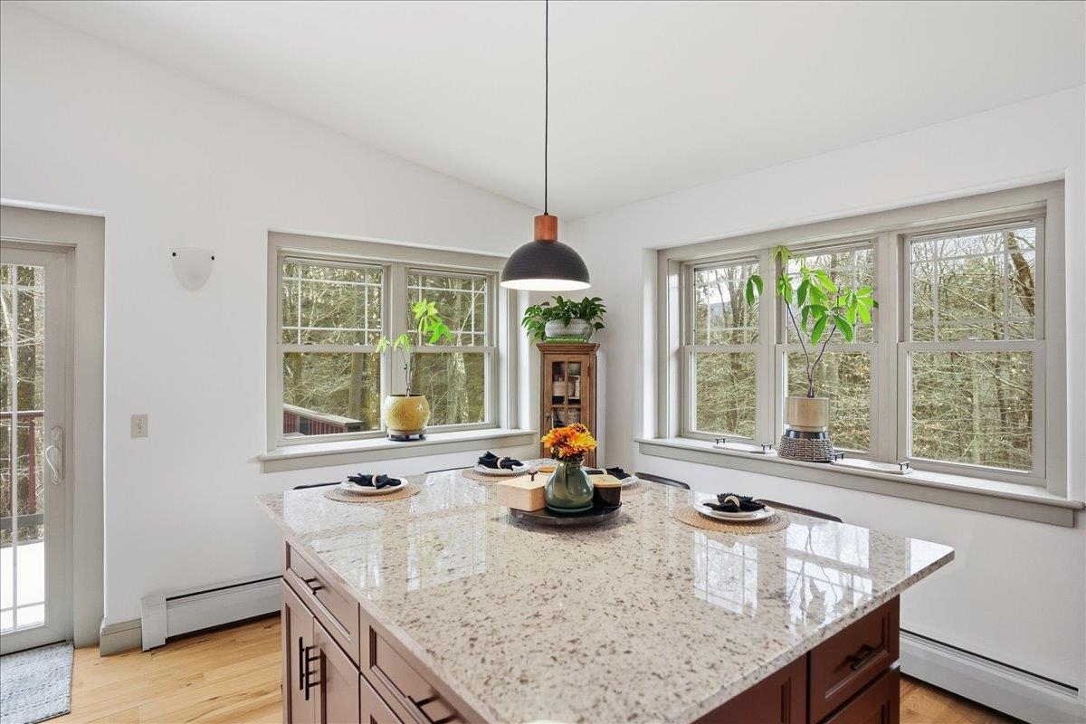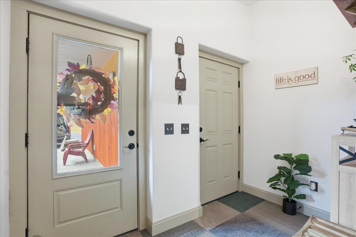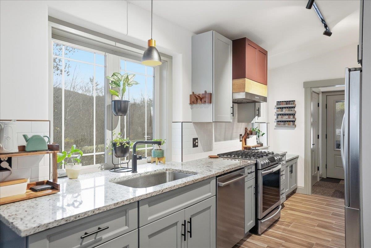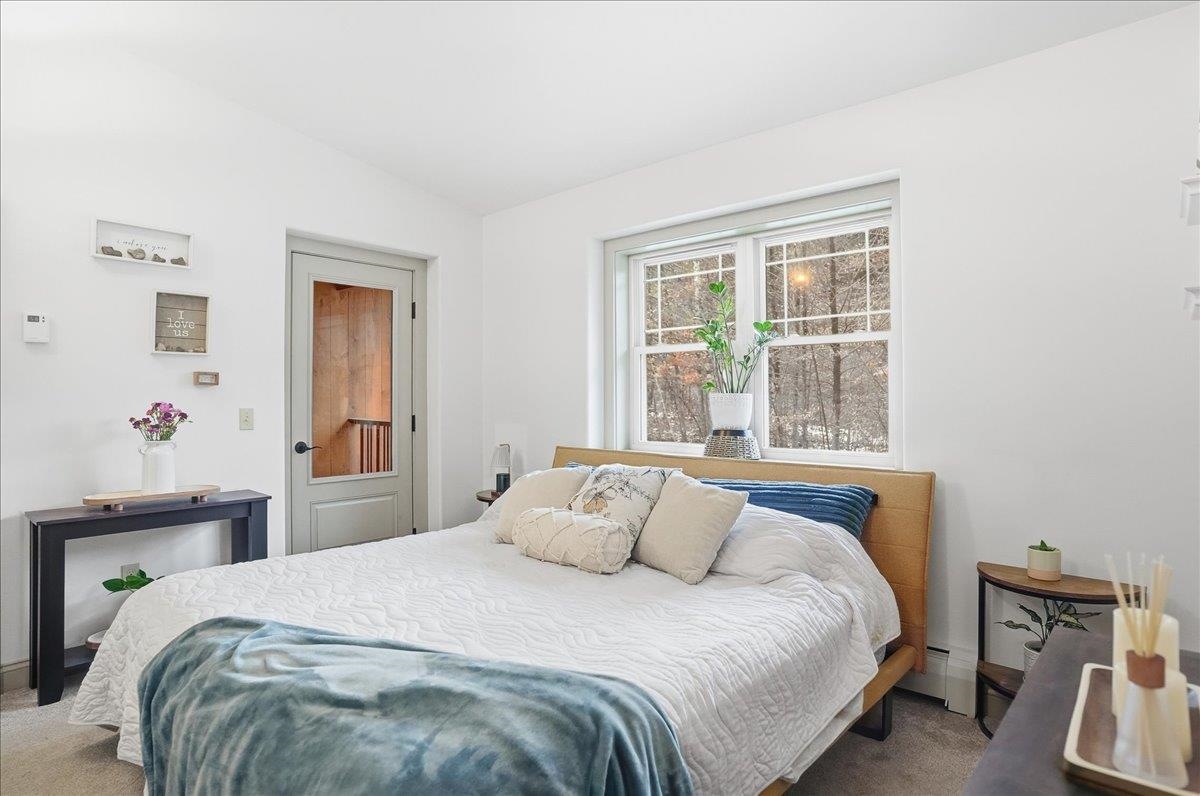 Welcome to this high-performance home offering exceptional energy efficiency, custom craftsmanship, and peaceful Vermont living just minutes from Waterbury Village. With an impressive HERS Index of 40, RESNET certification, and Vermont Base Level 2.0 Energy Standards, this home delivers superior comfort and lower utility costs. Built with quality in mind, the home features Insulated Concrete Forms foundation walls, triple-glazed windows, R-90 attic insulation, an air exchanger, and a high-efficiency IBC boiler with on-demand hot water. Inside, custom features shine--rounded corners, oversized window sills, solid-core doors, and warm finishes. The open main level features hardwood floors, a bright living/dining area, and a modern kitchen with granite counters, soft-close cabinetry, stainless vent hood, and an oversized island. The primary bedroom is located on the main-level, with its own private covered porch. The walkout lower level adds flexibility with two bedrooms, a second bath, dedicated laundry room, and a cozy bonus space--ideal for guests, multi-gen living, office use, or recreation. Large windows fill the home with natural light. Enjoy the luxury of living on a private road shared by only a few residences, while remaining close to I-89, downtown Waterbury, ski areas & trails. A rare opportunity to own a quality designed, energy-efficient modern home!
