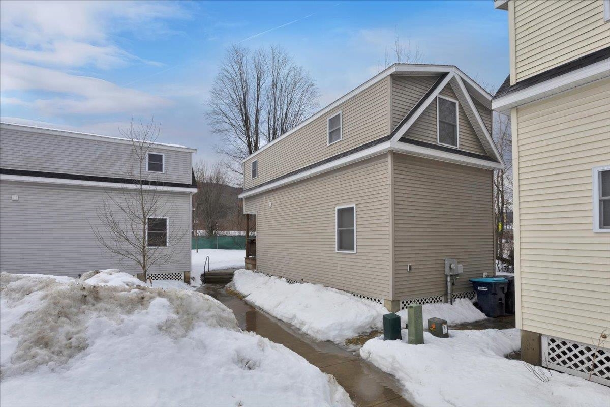 This stand-alone 2-bedroom, 1.5-bath condo offers the best of both worlds--low-maintenance living with the privacy of a single-family home. Nestled within a shared 0.91-acre common area, this home enjoys a semi-private setting, making it a peaceful retreat while still being close to everything Waterbury has to offer. Step inside to discover a thoughtfully designed interior, featuring freshly painted kitchen cabinets that add a modern touch to the heart of the home. The open-concept main floor is functional with a spacious kitchen island, first floor ½ bath, and open living room that creates a warm and inviting space for relaxing or entertaining. Upstairs you'll find a private washer and dryer, two good sized bedrooms and a full bathroom complete with a double vanity sink. Outdoor lovers will appreciate the front porch with a newly added dog fence, perfect for keeping furry friends safe while enjoying fresh air. With easy access to the expansive common yard, you'll have plenty of space to unwind, and enjoy the Vermont seasons. Minutes to the mountains, a stone's throw from Prohibition Pig restaurant, 20 minutes from Montpelier and 30 minutes from Burlington, this location has it all! Whether you're a first-time buyer, investor, or looking for a low-maintenance getaway, this charming home is a must-see.