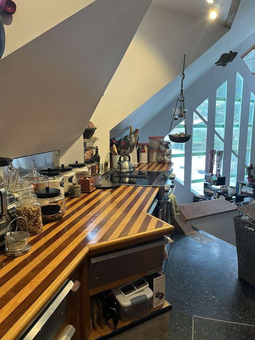 Riverfront architectural icon. Open plan 2 BR, 1.5 Baths in a 9 unit Housing development, ski areas nearby. Featured in Prickly Mountain documentary film.