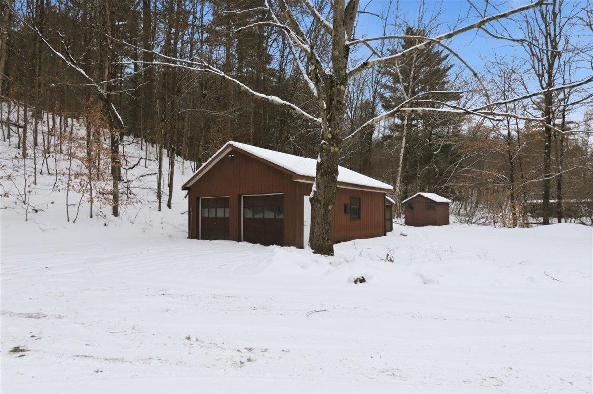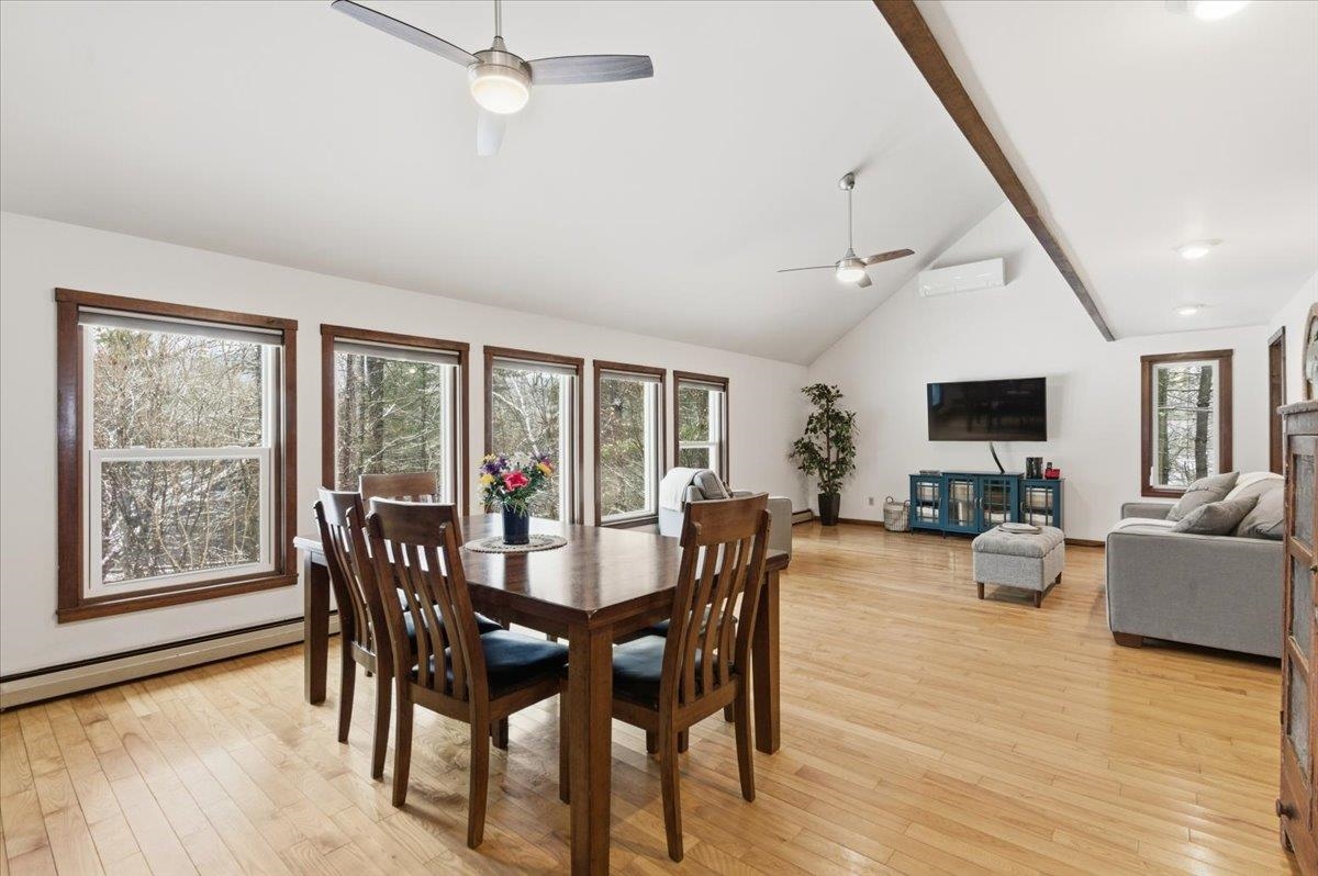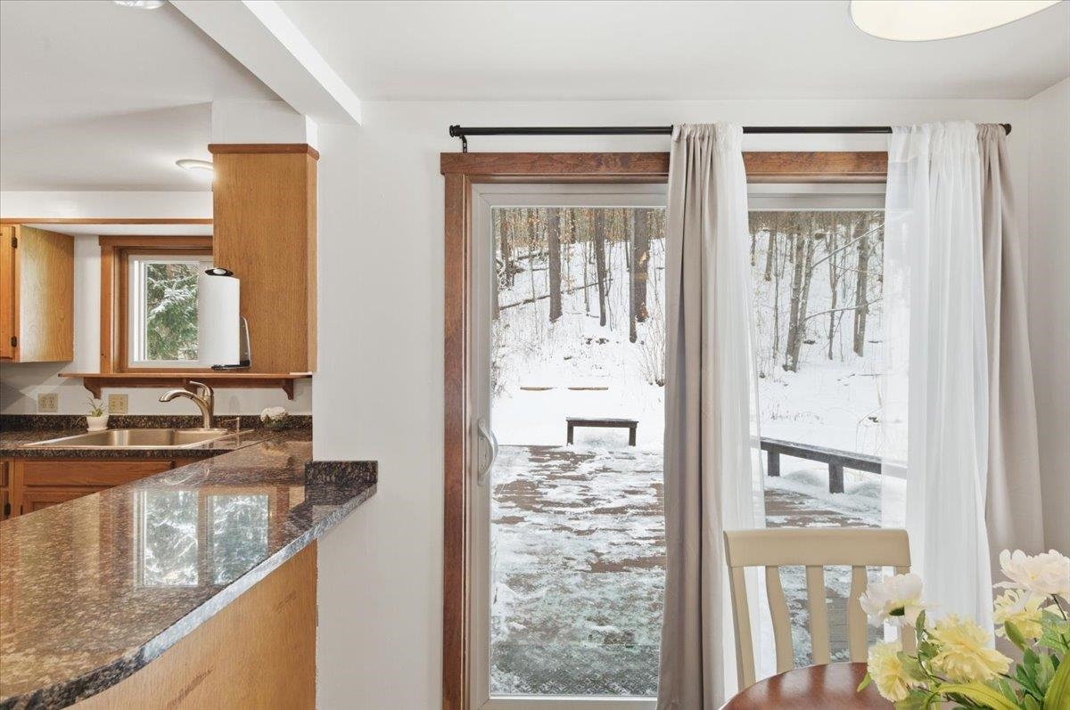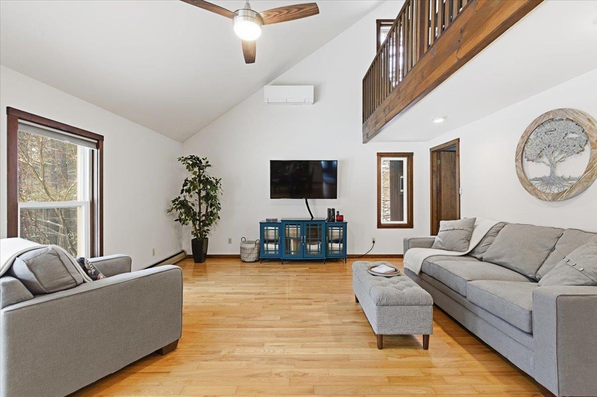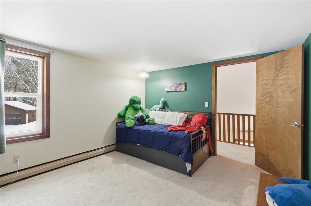 Nestled on a Berlin hillside above Route 12, this 3-bedroom home on 1.6 acres has so much to offer! Enter through a convenient mudroom with a large closet for all your gear. An adjacent sunny room features a sliding door that fills the space with natural light--perfect for a home office, playroom, or a cozy spot to unwind after a day of outdoor adventures. The U-shaped eat-in kitchen has everything at your fingertips, making meal prep and cleanup a breeze. The open living/dining room boasts vaulted ceilings and an easy flow with plenty of windows offering serene wooded views. Just off the living room is the first-floor primary bedroom, complete with a spacious walk-in closet. The large bathroom offers a separate shower and tub, along with a washer and dryer closet for added convenience. Upstairs, an open hallway overlooks the living/dining room and leads to two bedrooms with connecting closets and a full bathroom. The lower level provides abundant storage, a space for exercise equipment, a rec room with a wood stove, and a separate bonus space with a built-in desk. Basement egress is located in the utility room. Exciting updates to the home include a newer dishwasher & fridge, Pella windows throughout, and a whole house Kohler backup generator (2024) with a 10-year warranty. Enjoy outdoor living and relax on the spacious deck off the kitchen, or spend time exploring the nearby wooded trails. Great location, tucked away with plenty of privacy, while still conveniently located close to Montpelier, downtown Berlin & I-89!