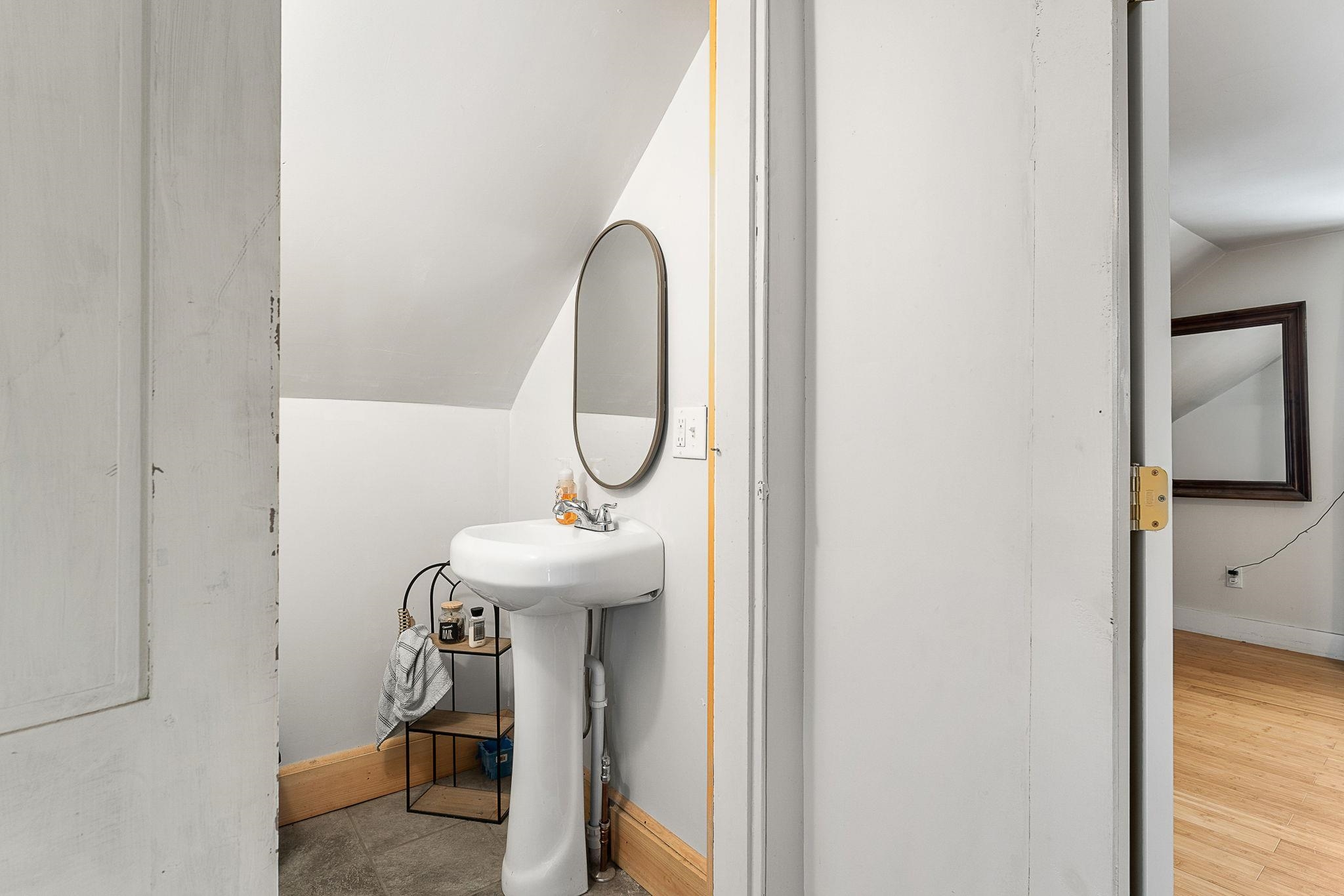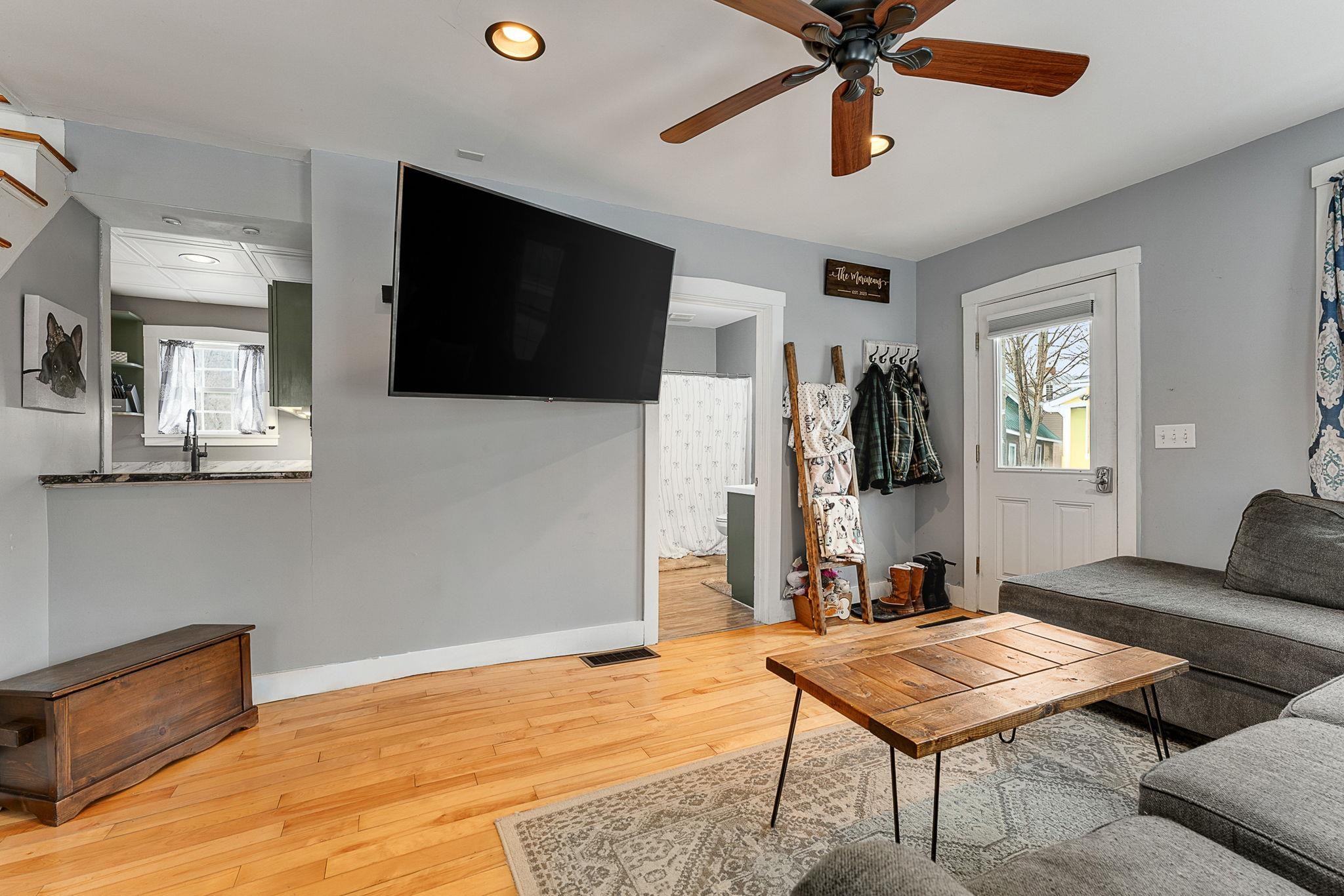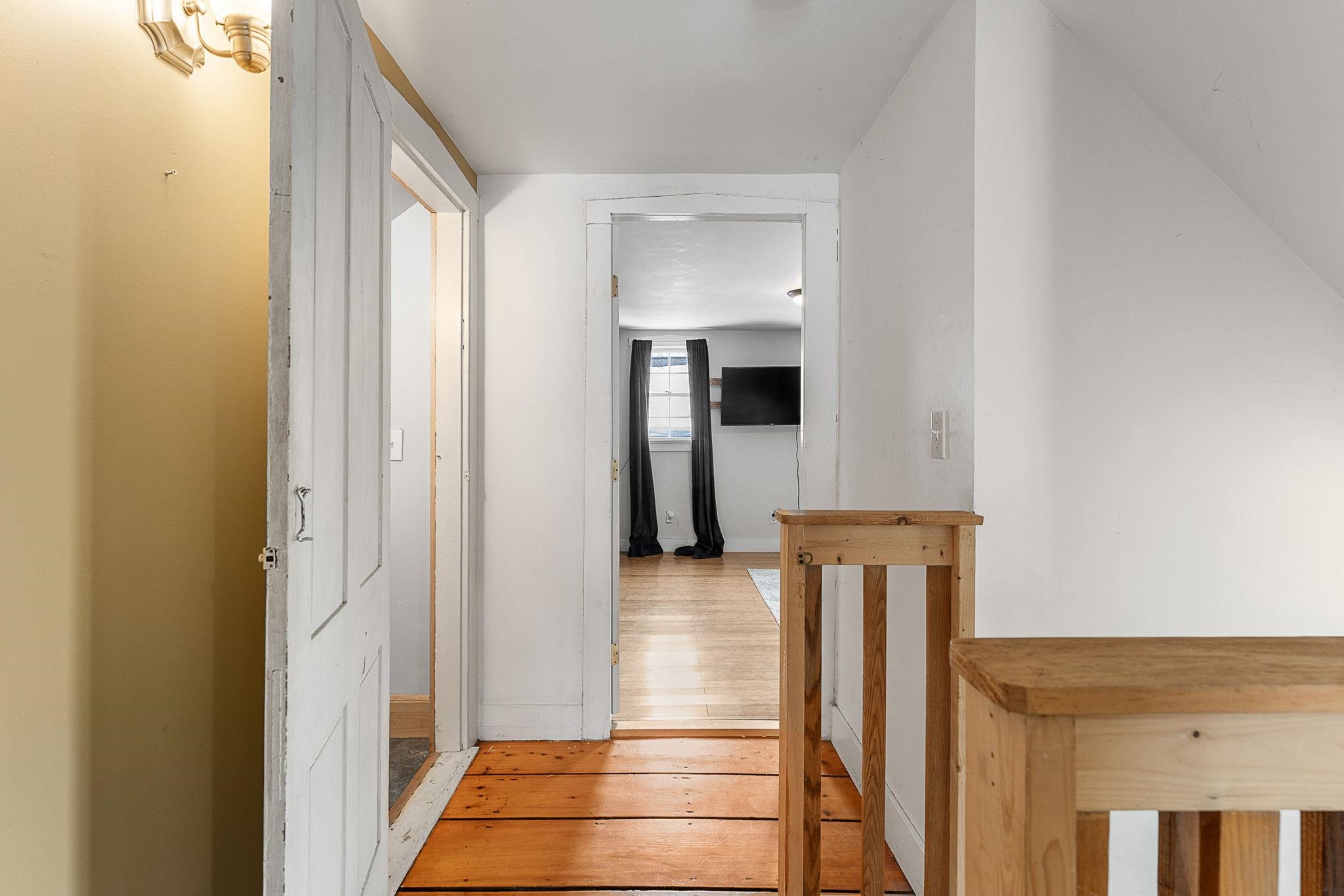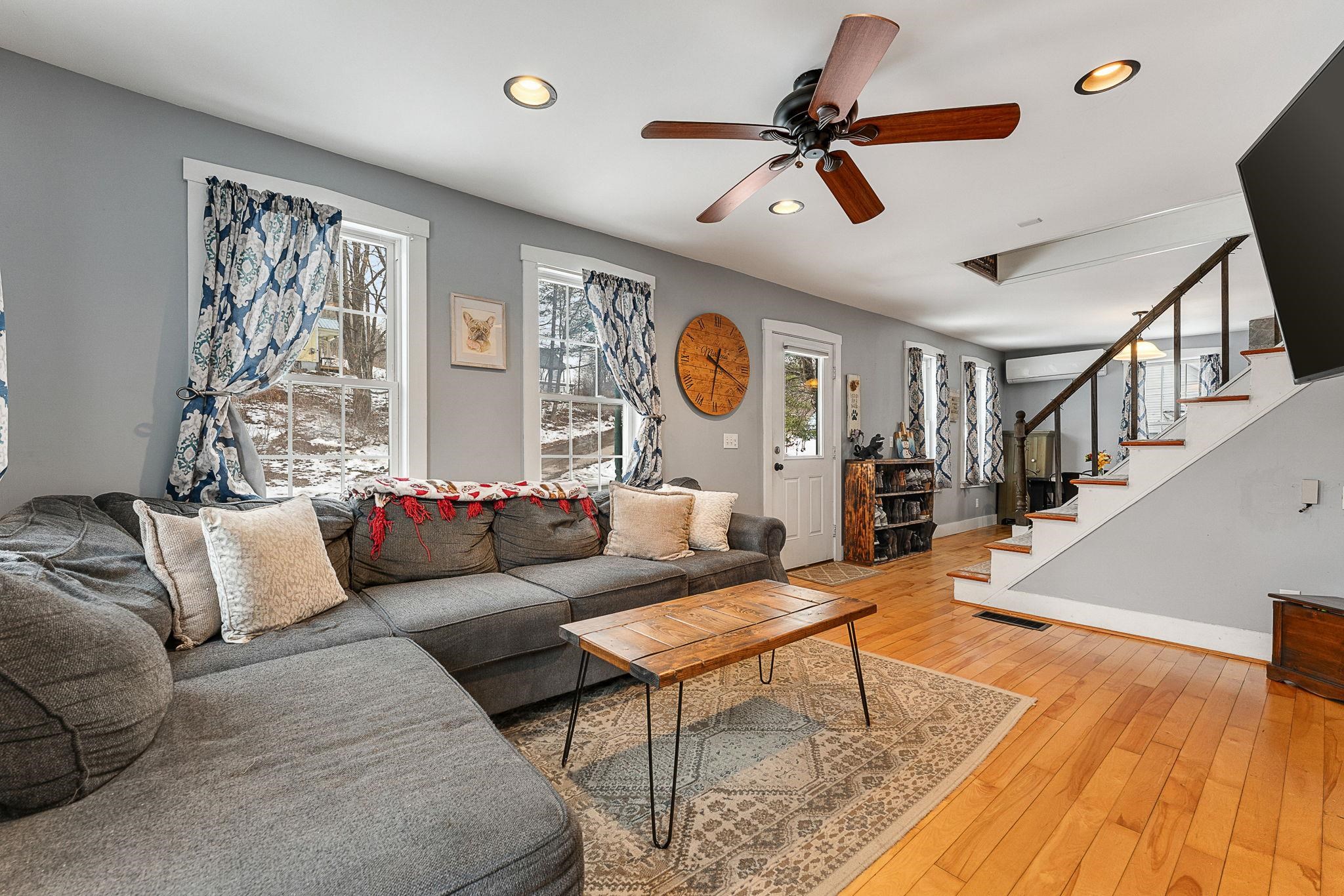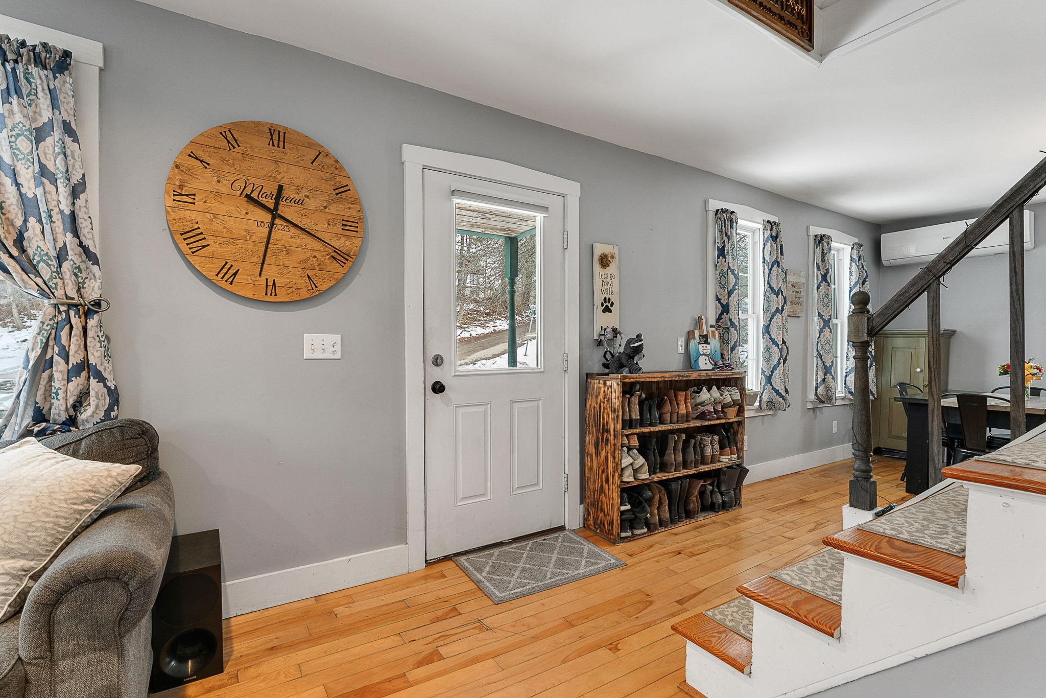 Welcome home! This cozy and classic cape with a huge fenced in yard is ready for its next chapter. Inside you'll find hardwood floors, a comfortable living room, a beautiful country kitchen, first floor laundry and full bath, and a super cozy dining nook with custom bar seating and a beautiful stone hearth. Upstairs are two bedrooms with original pine floors, and the 3rd primary bedroom is super spacious with a great closet to match. The current owners have made many thoughtful updates to the house, including: heat pump on the first floor for heating and cooling, adding a half-bath upstairs for the nighttime, paint, flooring, updated kitchen, updated downstairs bathroom, custom live edge bar, fencing the yard, shed, and more! This property has been well-maintained, convenient to amenities, and is completely move-in ready. Come check it out today!