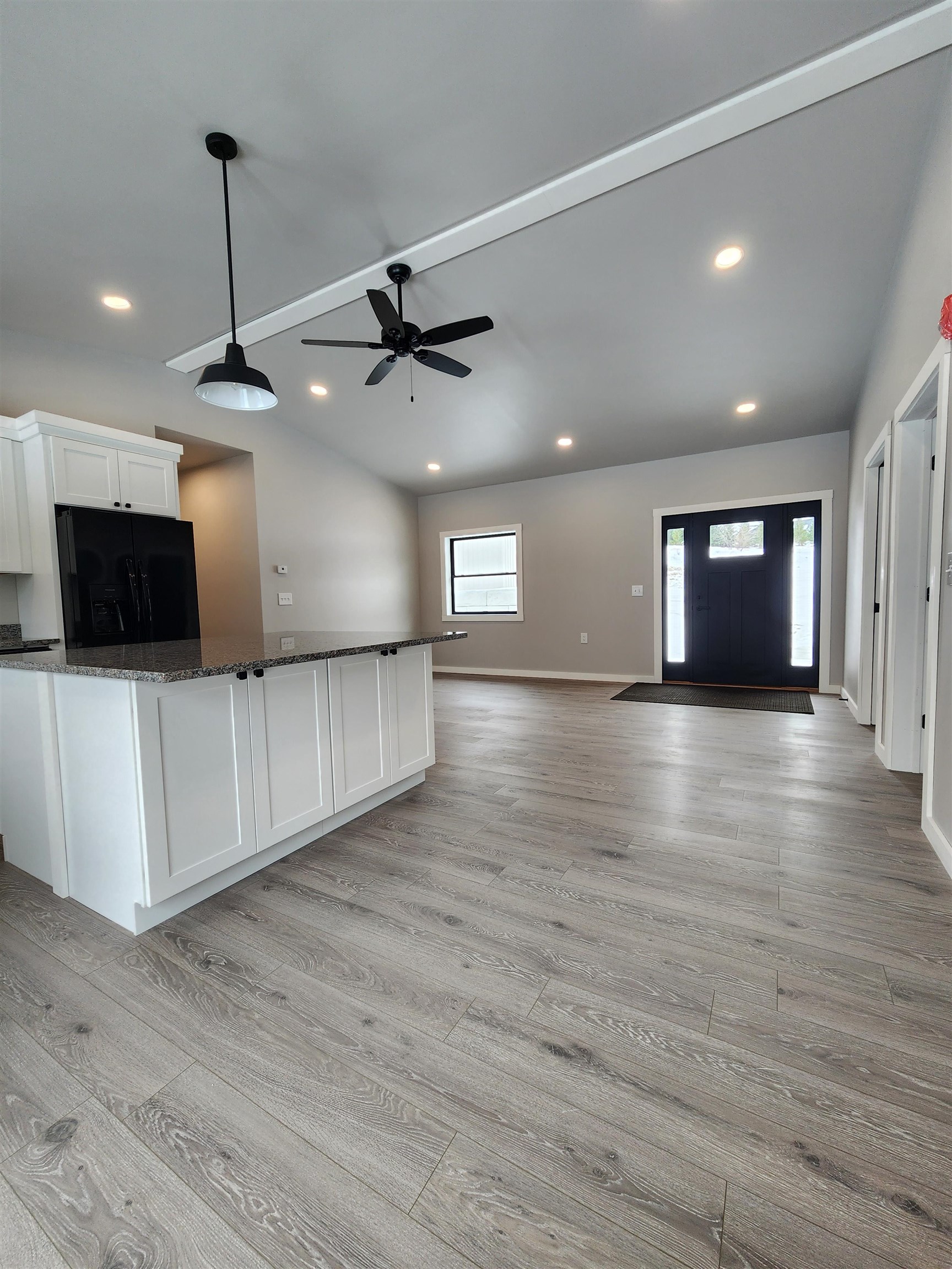 Commuters take notice! Don't miss out on this brand-new 2026 custom-built 3-bedroom, 3-bath ranch with garage, set on 6.8± private acres in a peaceful rural setting just minutes from I-89 Exit 5 in Williamstown. This highly convenient location offers quick access to Barre, Montpelier, and other Central Vermont destinations. The home is built on an efficient, gas-heated insulated radiant slab and features excellent insulation paired with striking modern fiberglass double-pane windows throughout. Step into the open-concept Great Room and you'll immediately appreciate the granite kitchen countertops, center island, and soft-close cabinetry. Engineered wood flooring provides a seamless, modern look throughout the main living areas. The Primary Suite offers a tiled walk-in shower, generous walk-in closet, and 3-foot doorways designed for enhanced accessibility. A small office space near the side entry could easily be converted into an additional walk-in closet if desired. An efficient on-demand system heats both the home and filtered domestic water. Additional features include LED lighting throughout, pocket and barn doors, and thoughtful modern design details. A detached garage provides ample space for vehicles, equipment, or recreational toys. Enjoy summer days by the nearby stream or explore the land year-round--this property truly offers something for everyone!