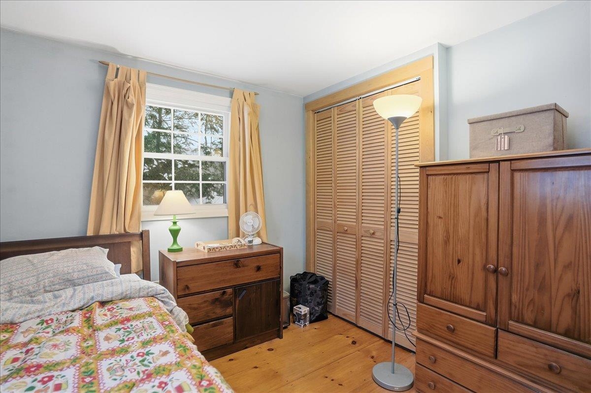 Tucked away on a peaceful wooded lot in the heart of Starksboro, this charming 2-bedroom, 1-bath home offers comfortable one-floor living with a warm, inviting feel. A covered front porch welcomes you inside, where an open floor plan seamlessly connects the kitchen, dining, and living areas. Wood floors run throughout the home, enhancing its natural character. The living room is anchored by a cozy wood stove, creating a welcoming gathering space and providing efficient supplemental heat during Vermont's cooler seasons. Both bedrooms are well-sized, and the full bath is conveniently located on the main level. Surrounded by trees, the wooded lot offers privacy and a serene setting while still being close to local amenities. This home is an ideal opportunity for those seeking simplicity, comfort, and the beauty of Vermont living.