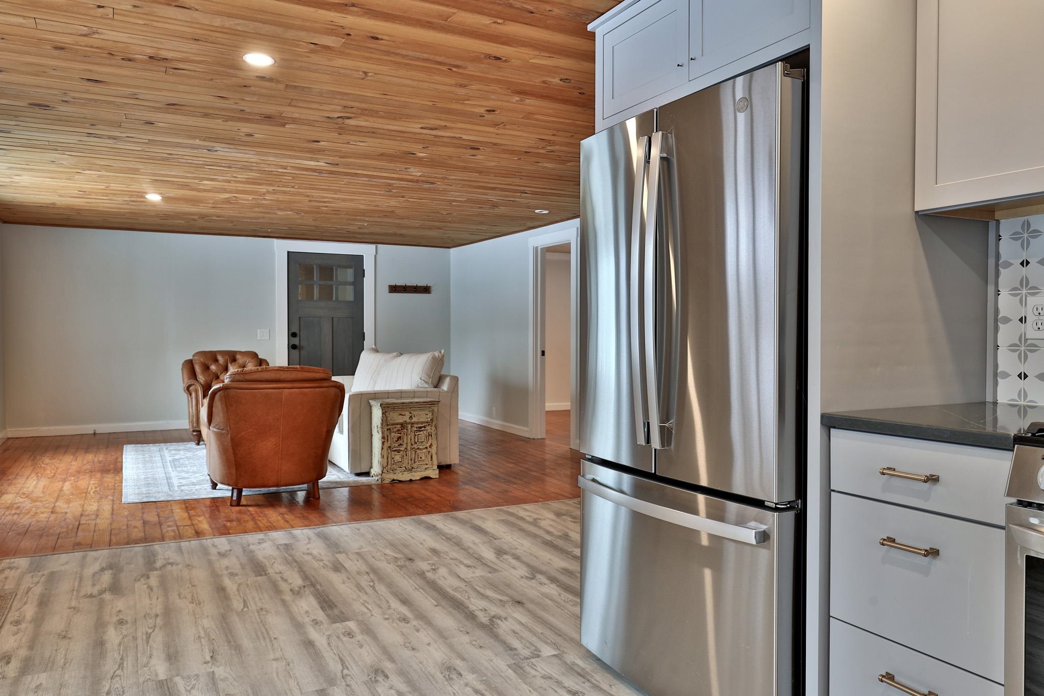 Nestled in the picturesque hollows of Rochester, Vermont, this charming and fully updated home offers the ease of one-level living in a modest yet wonderfully comfortable package. Antique softwood floors, knotty pine ceilings, and a large bay window framing beautiful North Hollow views create a warm and inviting atmosphere, while the open floor plan is equally suited for entertaining and intimate gatherings. The updated kitchen features crisp Shaker-style cabinetry, new stainless steel appliances, gleaming soapstone countertops, and an eye-catching Art Deco tile backsplash. Two spacious bedrooms are thoughtfully positioned at opposite ends of the home with a completely remodeled bathroom in between, providing both comfort and privacy. A host of exterior improvements enhances the home's curb appeal, including a prominent and welcoming covered front porch, attractive new barn doors on the attached one-car garage, and a generous private rear deck ideal for relaxing or outdoor dining. Additional highlights include a standby generator, a small barn, and the foundation and framing for a large metal outbuilding--ready for the next owner to complete using the on-site materials. Don't miss this opportunity to own an adorable and affordable home in the heart of the Green Mountains. Call today to schedule your private showing.